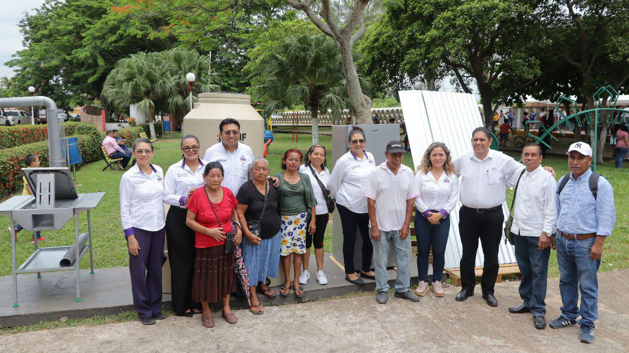 El evento de entrega de estufas ecológicas, atados de láminas, tinacos y refrigeradores de dos puertas se realizó en el municipio de Nanchital, asistiendo el director del DIF Coatzacoalcos, Elit Seba Juárez.