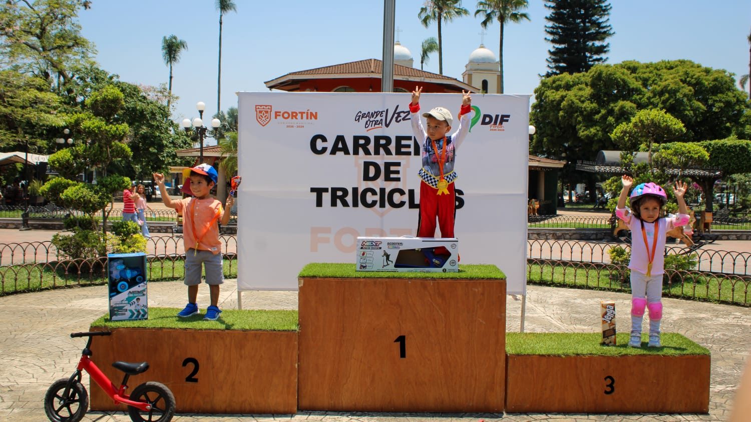 Más tarde, la emoción continuó con la 1ra. Carrera de Triciclos, en la que participaron más de 25 niñas y niños, quienes recorrieron cerca de 200 metros, entre porras, sonrisas, entusiasmo y el cariño de sus familias.