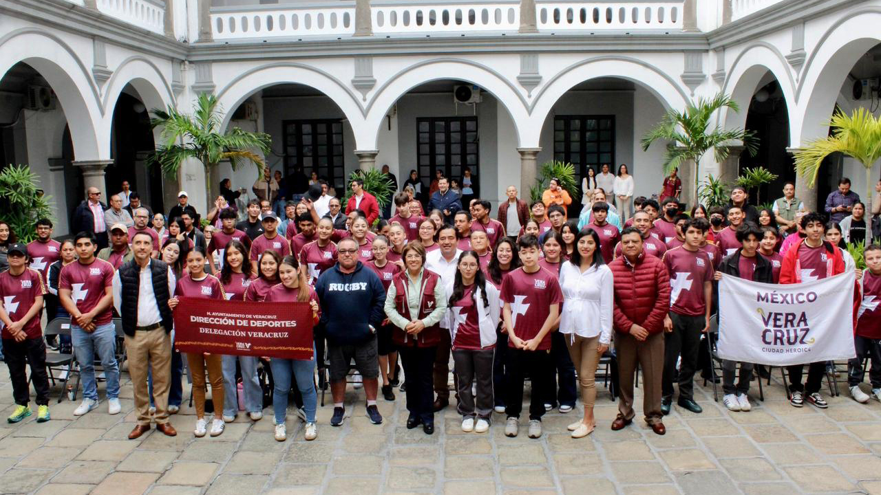 En el Patio Central del Palacio Municipal de Veracruz, fueron abanderados deportistas, entrenadores y funcionarios de las 24 disciplinas que integran la representación del municipio, quienes portarán con orgullo los colores y la identidad veracruzana en la máxima justa deportiva del país.