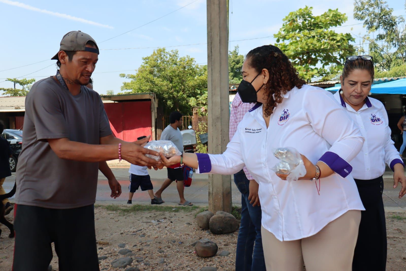Coatzacoalcos, Ver.-Siguiendo las instrucciones de la presidenta del DIF Municipal Coatzacoalcos, Esther Mortera Zetina, de atender a las personas más vulnerables, este miércoles personal del organismo entregó alimentos calientes a los migrantes que se encuentran en los bajos del puente de la Avenida Uno y posteriormente a familiares de pacientes en las afueras del Hospital del IMSS No.36.