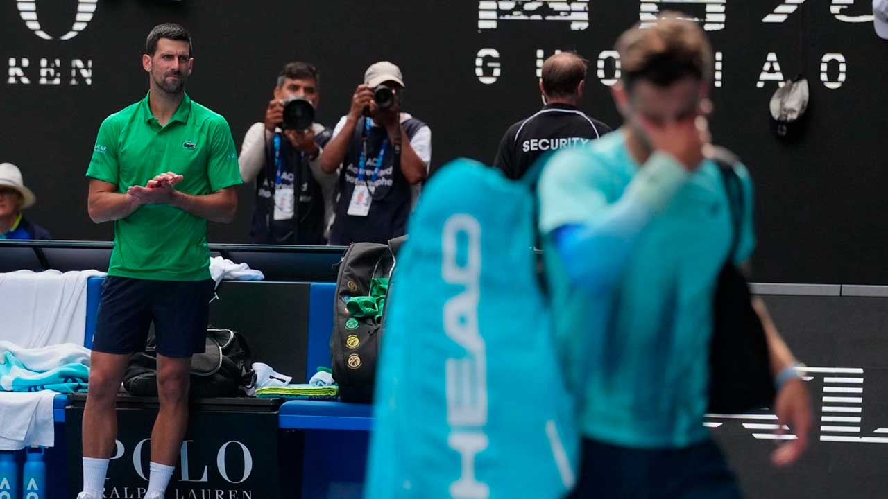 Melbourne.- Novak Djokovic avanzó el miércoles a las semifinales del Abierto de Australia después de que Lorenzo Musetti se retirara en el tercer set por una lesión tras haber ganado los dos primeros sets.