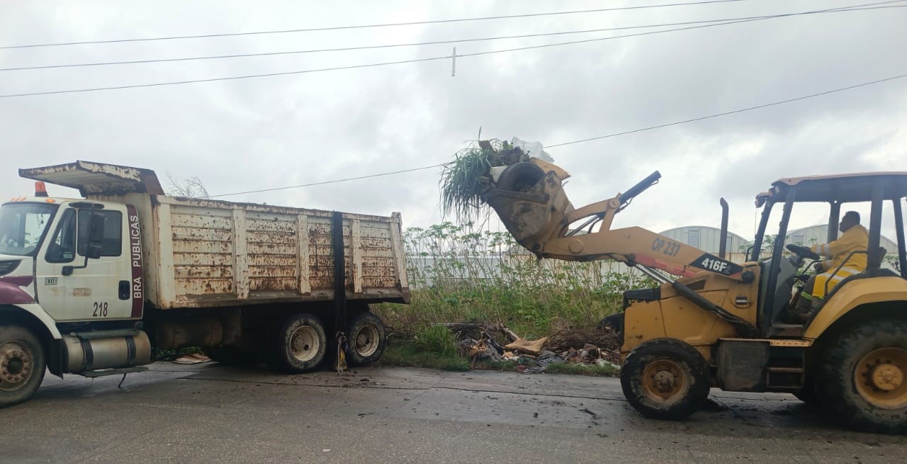 Las labores de este domingo se complementaron con perifoneo informativo por parte de personal de Limpia Pública para dar a conocer los horarios de recolección de basura. También realizaron barrido de calles, limpieza de banquetas y chapeo de vegetación, con el apoyo de maquinaria pesada.