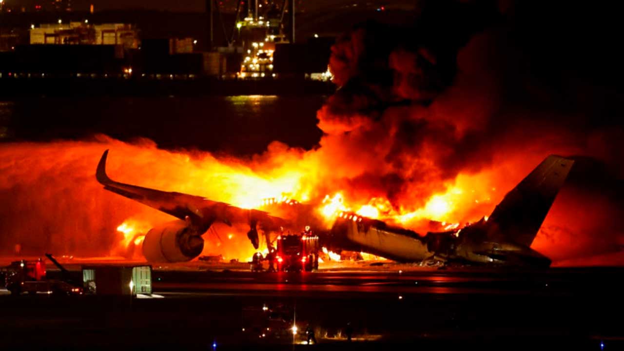 Dos aviones colisionan en aeropuerto de Tokio y deja 5 muertos; así grabaron el choque