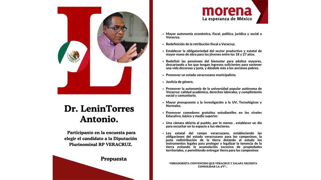 Dr. Lenin Torres Antonio participante en la encuesta para elegir candidato a diputación plurinominal en Veracruz