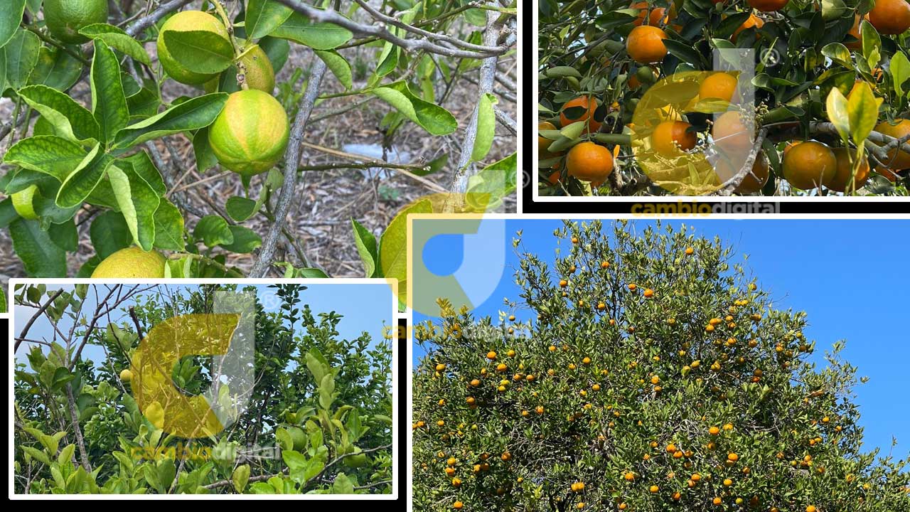 “Baja la producción considerablemente en el árbol de naranja que no mató; el limón lo resiste un poco más, la toronja también se ve afectada, pero a la tangerina la devastó. Ahí sí nos acabó”.