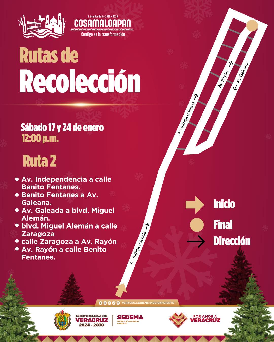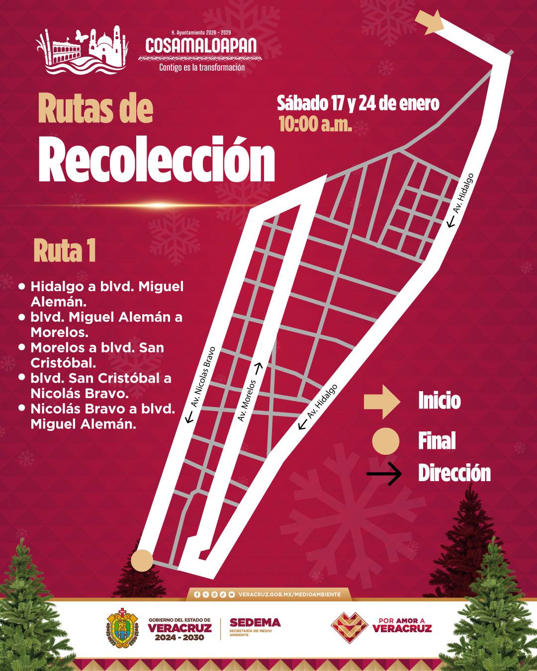 Adicionalmente, los días 17 y 24 de enero se instalarán puntos temporales de acopio y se habilitarán rutas de recolección.