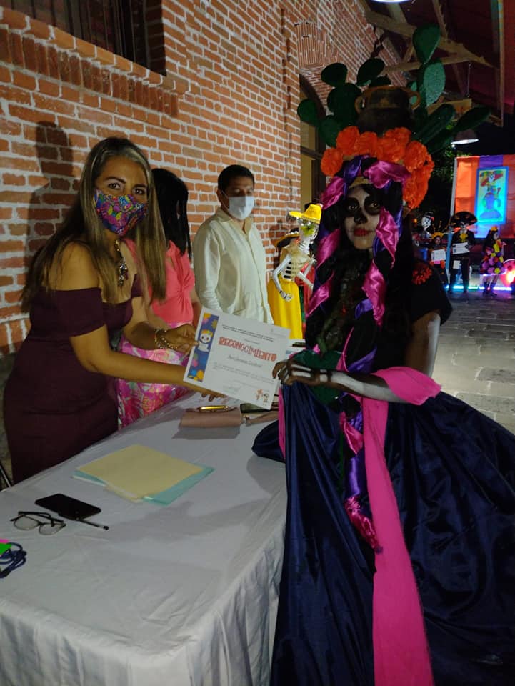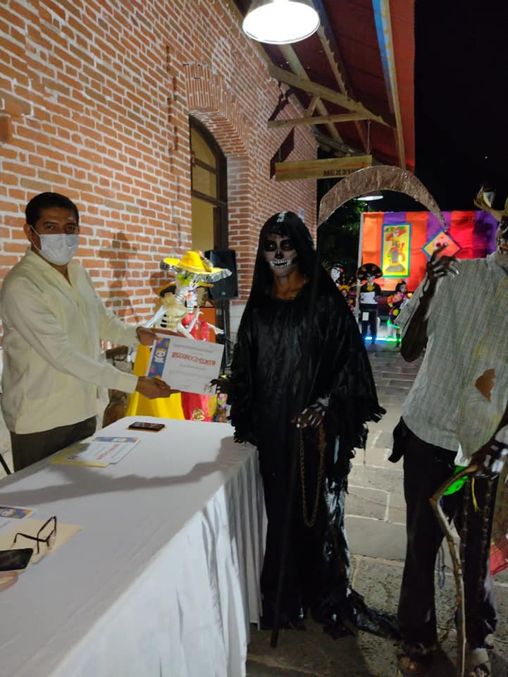 Manlio Fabio Altamirano, Ver.- La tarde del sábado los purgueños disfrutamos en el Centro Cultural La Purga del evento organizado por el ayuntamiento de Manlio Fabio Altamirano que preside Nora Esther Vela Torres, en coordinación con la ciudadanía, donde se dio la presentación del alebrije y tapete de Día de Muertos, así como el concurso de Catrinas y Catrines.