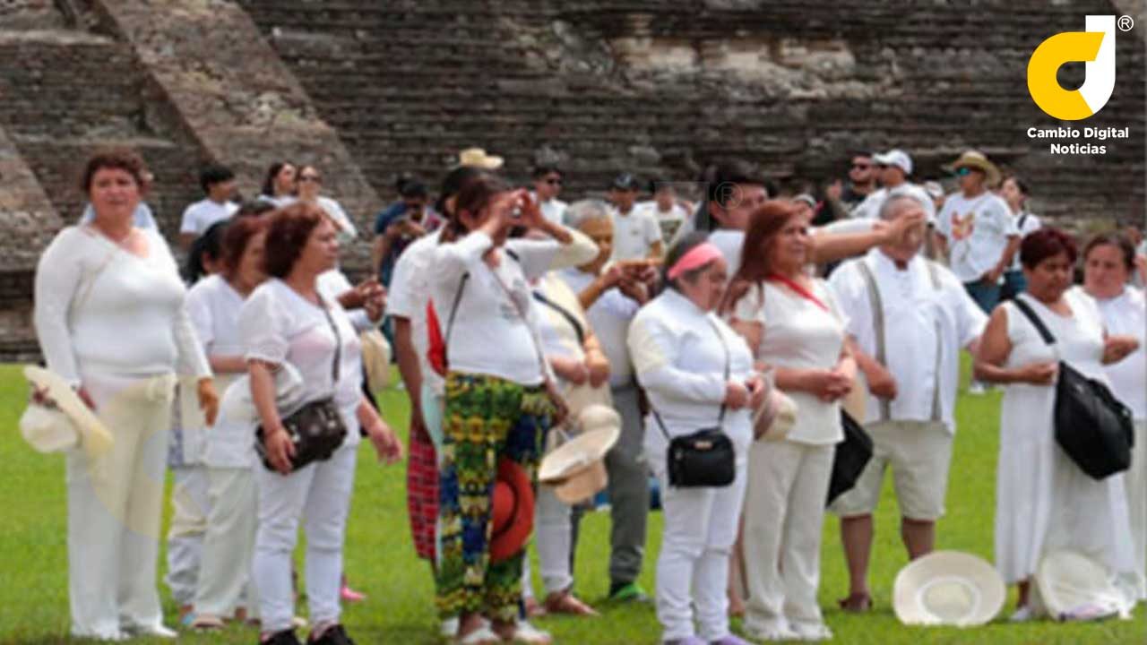 Papantla, Ver.– De nueva cuenta, el Centro Ceremonial de El Tajín fue escenario de la llegada de cientos de visitantes, quienes en su mayoría portaban ropa de color blanco, algunos atuendos regionales y otros accesorios ceremoniales.