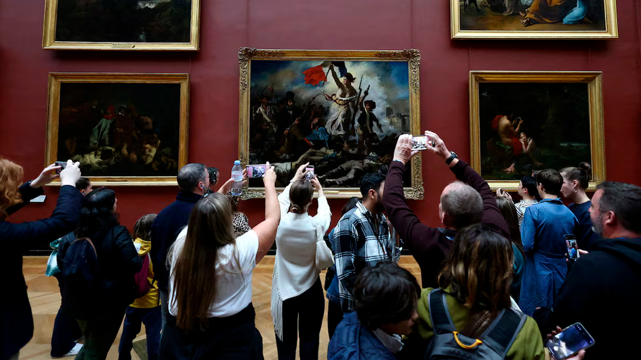 En la acera de enfrente, a orillas del Sena, algunos posaban ante sus móviles con la ventana reventada, ahora cubierta de negro, como telón de fondo. En el interior, el murmullo de un joven guía, con grueso acento francés, relataba el golpe ante un rebaño de turistas, como si ya fuera una parada más del recorrido: “llegaron en dos motos”, “rompieron las vitrinas con una radial”, “lo hicieron todo en ocho minutos y escaparon”, “la pérdida se eleva a 88 millones”. Esta era la estampa del Louvre del día después.