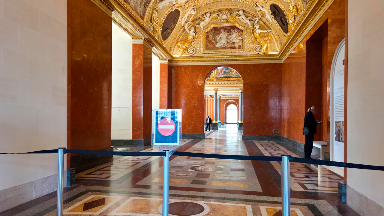 Entre grupos de visitantes de medio mundo y abuelos franceses a cargo de sus nietos en pleno receso escolar, un turista asiático pregunta por la Victoria de Samotracia simulando la ausencia de brazos: su expresividad suple con creces que no hable inglés. Subiendo la escalinata de la diosa alada por el lateral izquierdo, se llega a la galería de Apolo. La entrada está cerrada a cal y canto, sin un cartel que lo explique. “No hacen falta paneles para entender este cierre”, dice un vigilante con cara de pocos amigos, dedicado a impedir, con éxito desigual, que los visitantes hagan fotos a esa entrada. Frente a la puerta monumental, impecablemente restaurada “gracias a Total”, como recuerda un rótulo —patrocinio que dialoga incómodamente con la historia de extracción colonial que rodea a estas joyas reales—, el flujo llega a oleadas cada media hora. A las 9.30, 10.00 y 10.30, según los horarios de las entradas precompradas, obligatorias para acceder al museo. Se arremolinan en grupos pequeños, descubren el cierre y entienden, de golpe, que todo sucedió aquí.