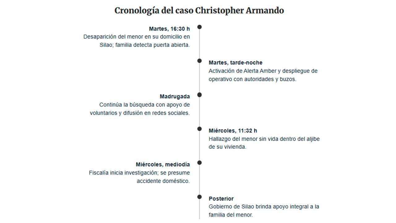 Todo comenzó la tarde del martes, cuando la rutina familiar se interrumpió abruptamente. Christopher se encontraba en casa bajo el cuidado de su padre y junto a sus hermanos mayores, mientras su madre, Yanet Dolores, cumplía con su jornada laboral. Fue alrededor de las 16:30 horas cuando notaron su ausencia.