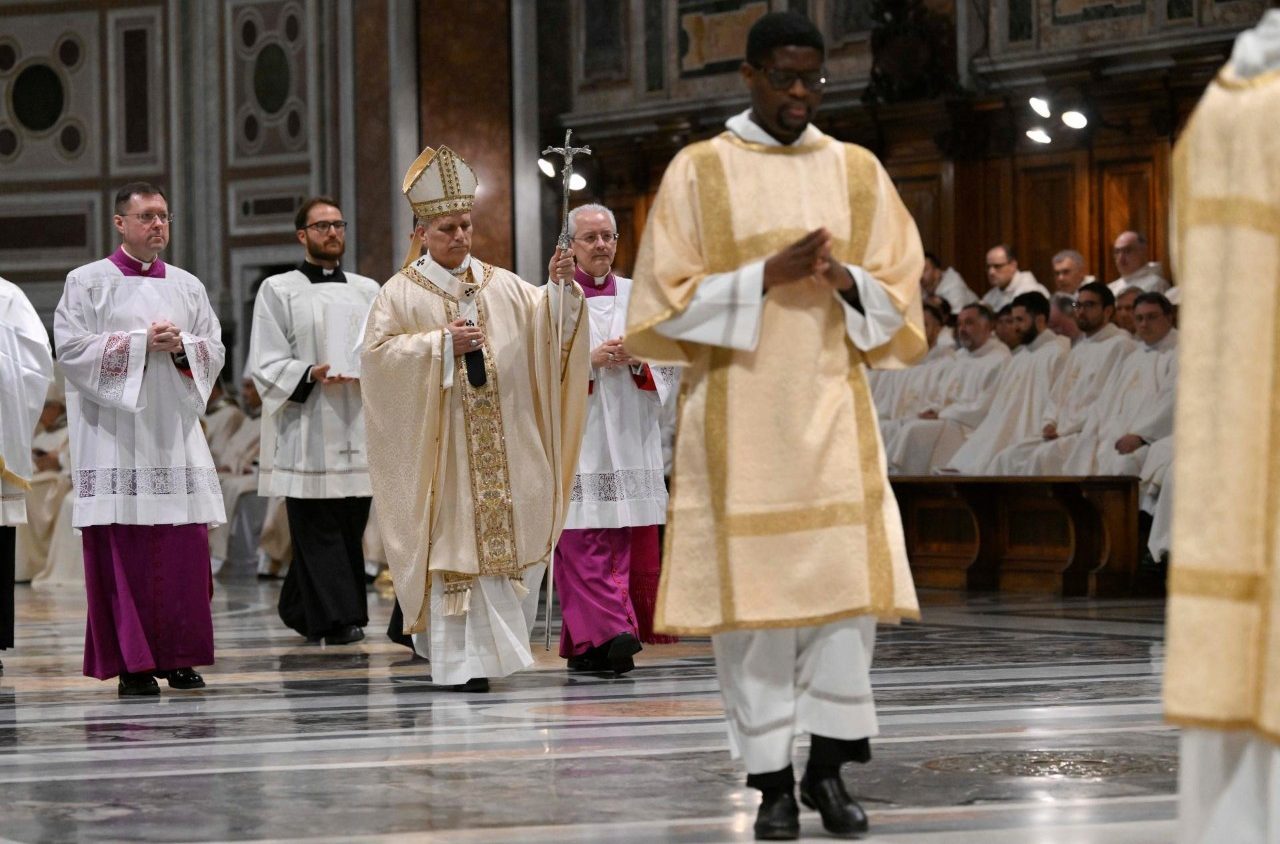Luego, el esperado rito de la lavanda de los pies vio a 11 sacerdotes ordenados el año pasado y a su guía espiritual a pies descubiertos, con un cierto pudor y profunda humildad, esperando que el Pontífice cumpliera ese gesto supremo de amor y humildad. Ellos son: Andrea Alessi, Gabriele Di Menno Di Bucchianico, Francesco Melone, Clody Merfalen, Federico Pelosio, Marco Petrolo, Pietro Hieu Nguyen Huai, Matteo Renzi, Giuseppe Terranova, Simone Troilo, Enrico Maria Trusiani y Renzo Chiesa, director espiritual del Pontificio Seminario Romano Mayor.