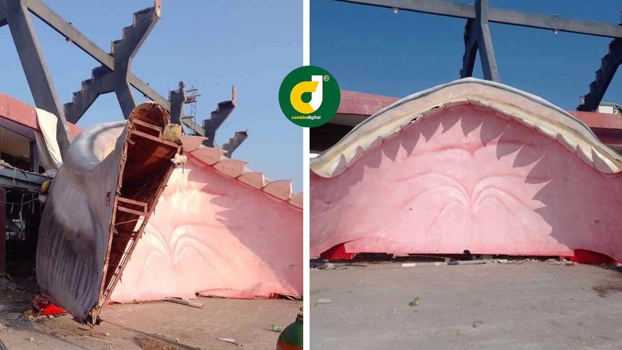 Boca del Río, Ver.- Las cabezas de los tiburones ubicados en el acceso al estadio de futbol Luis “Pirata” Fuente que este 17 de marzo cumple 56 años, serán restauradas y se reubicarán en algún de la zona turística de la conurbación Veracruz-Boca del Río.
