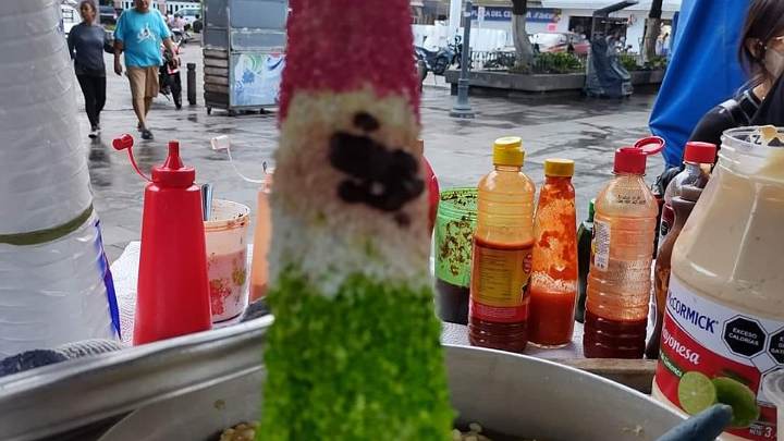 El elote tricolor lo ofrece en estas fiestas patrias el negocio de “Elotes y Esquites Perita” en el parque central, frente al palacio municipal.