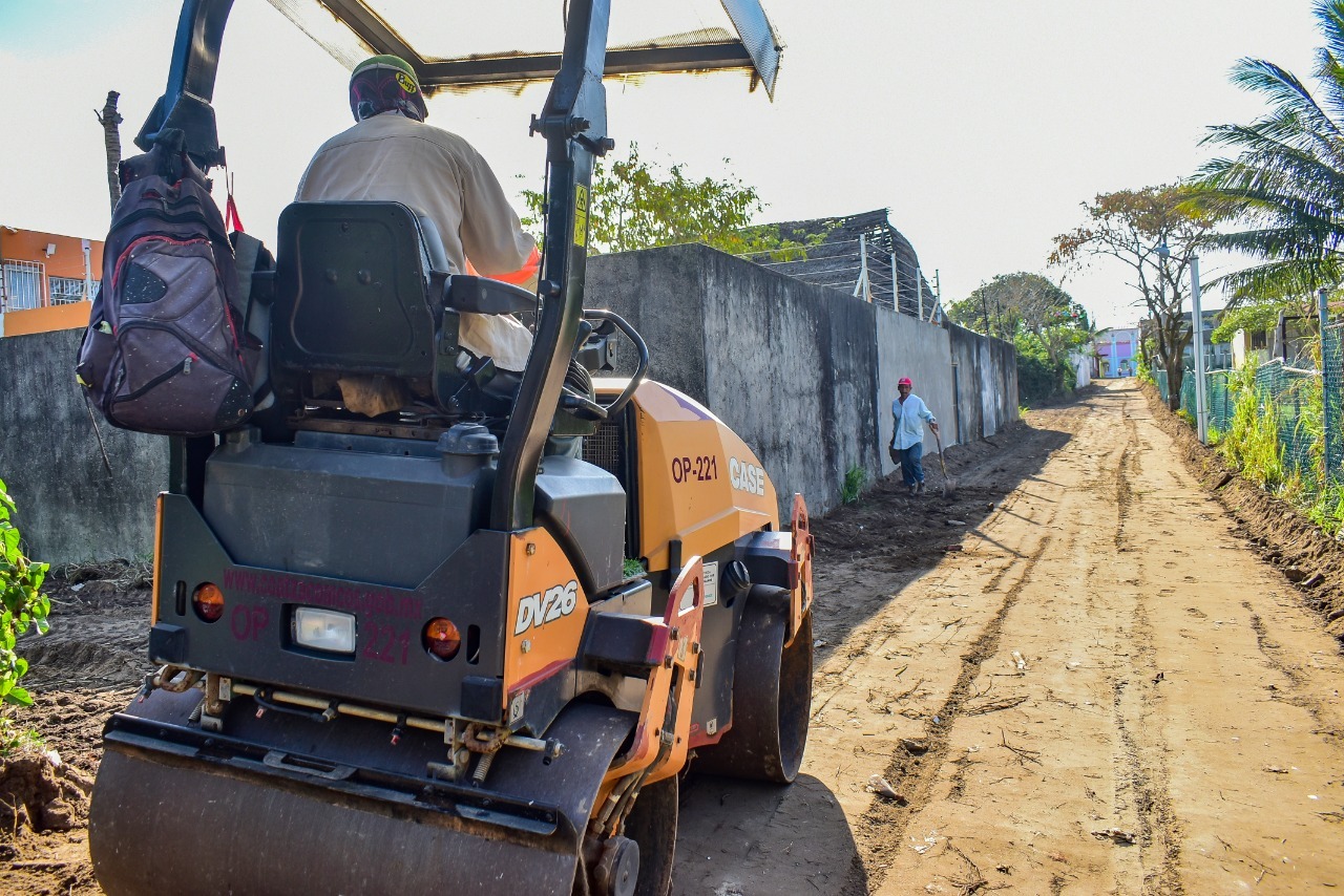 Coatzacoalcos, Ver.- Personal del Ayuntamiento de Coatzacoalcos otorga acciones complementarias en el andador “Sor Juana” de la colonia “El Tesoro”, que consisten en el remozamiento y nivelación de la vialidad para aplicar asfalto, el cual, junto al alumbrado público recién instalado, darán mayor seguridad a miles de estudiantes y vecinos de este sector.