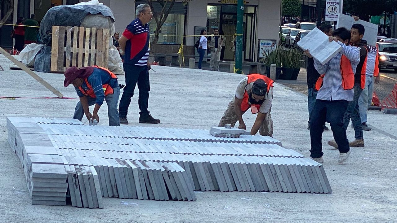 Xalapa, Ver.- Se están llevando a cabo trabajos de renovación en la Plaza Lerdo, ubicada en el primer cuadro de la ciudad, a un costado de la Catedral de Xalapa y frente al Palacio de Gobierno. Estos trabajos consisten en la colocación de piso de mármol, lo que representa una mejora significativa en la infraestructura urbana de este importante espacio público.