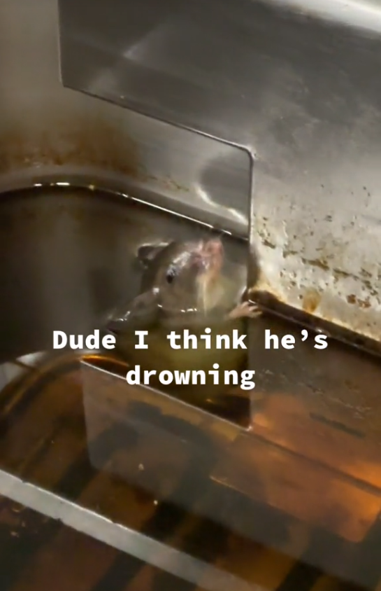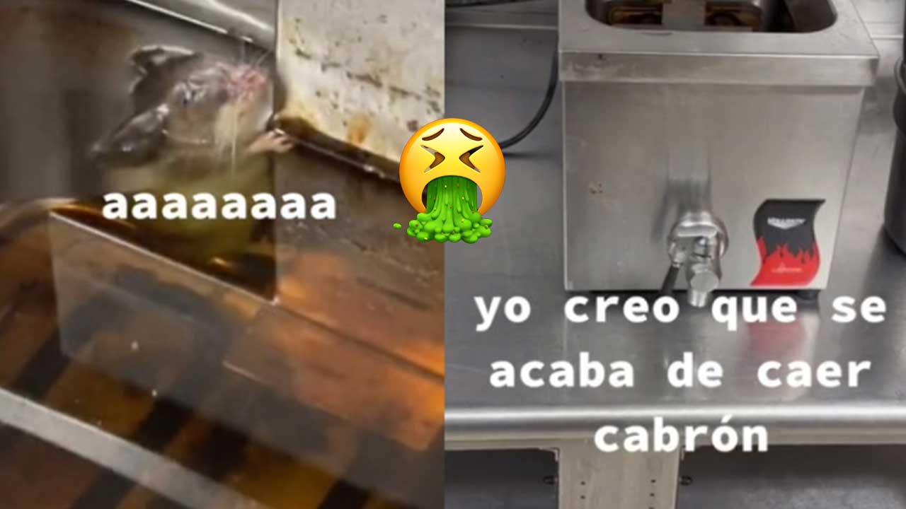 En Tiktok se viralizó el video de un empleado de restaurante que compartió su reacción al encontrar una rata en el aceite de la freidora, ya que tuvo que armarse de valor para rescatar al animal.