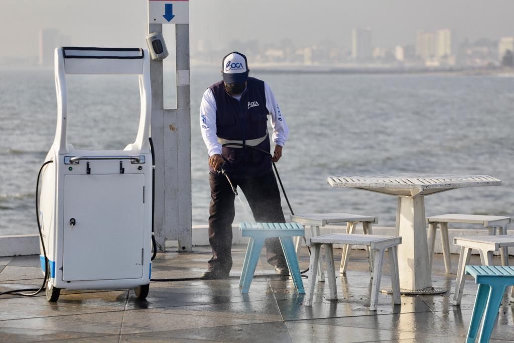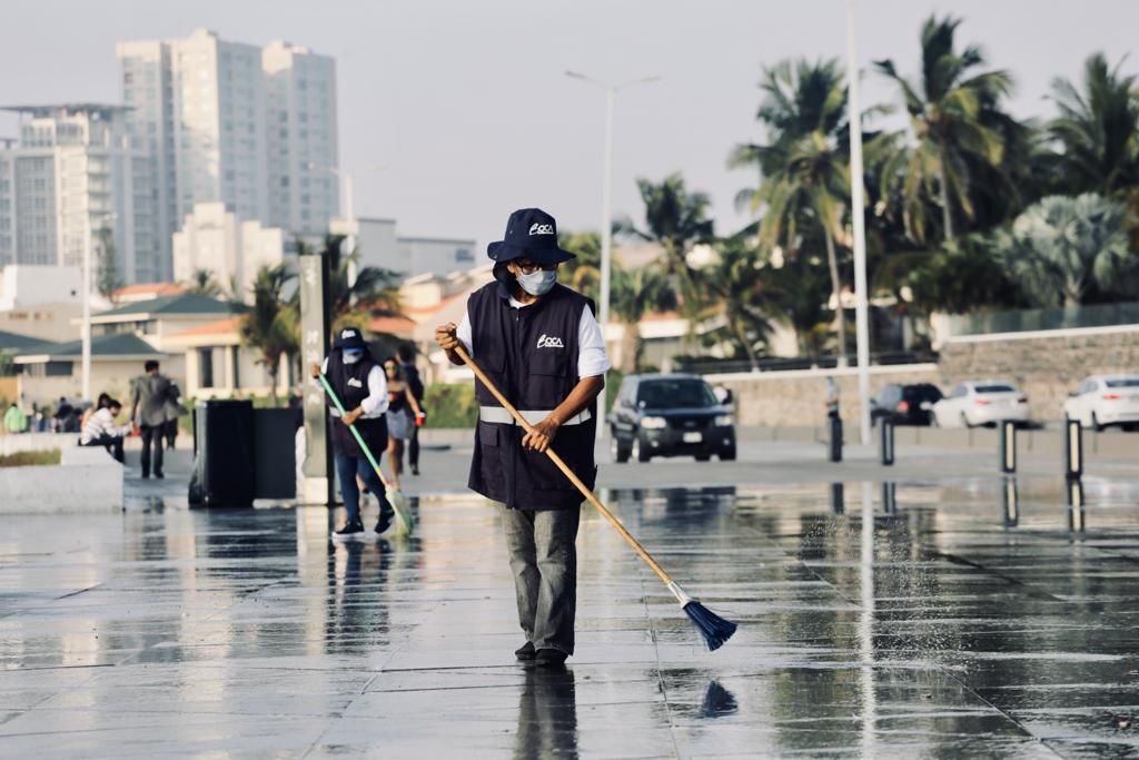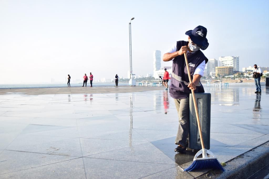 El alcalde Juan Manuel Unánue subrayó que el trabajo fuerte lo realiza el personal de Limpia Pública, quienes se congregan desde muy temprana hora para que el bulevar Ávila Camacho, Miguel Alemán, Vicente Fox y la zona costera luzcan implecables para los turistas.