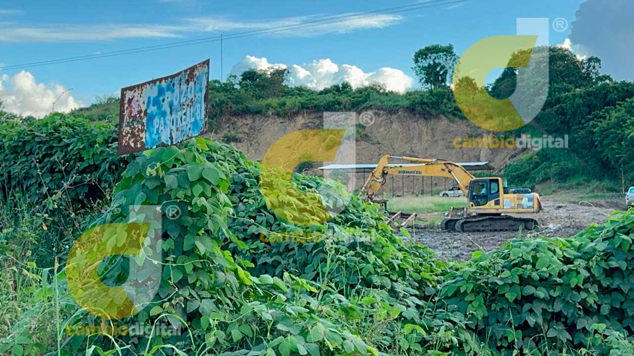 Con máquina hacen hoyos en el terreno donde se ve agua casi a raz del suelo, lo que indica que el manto freático está a muy poco profundidad.