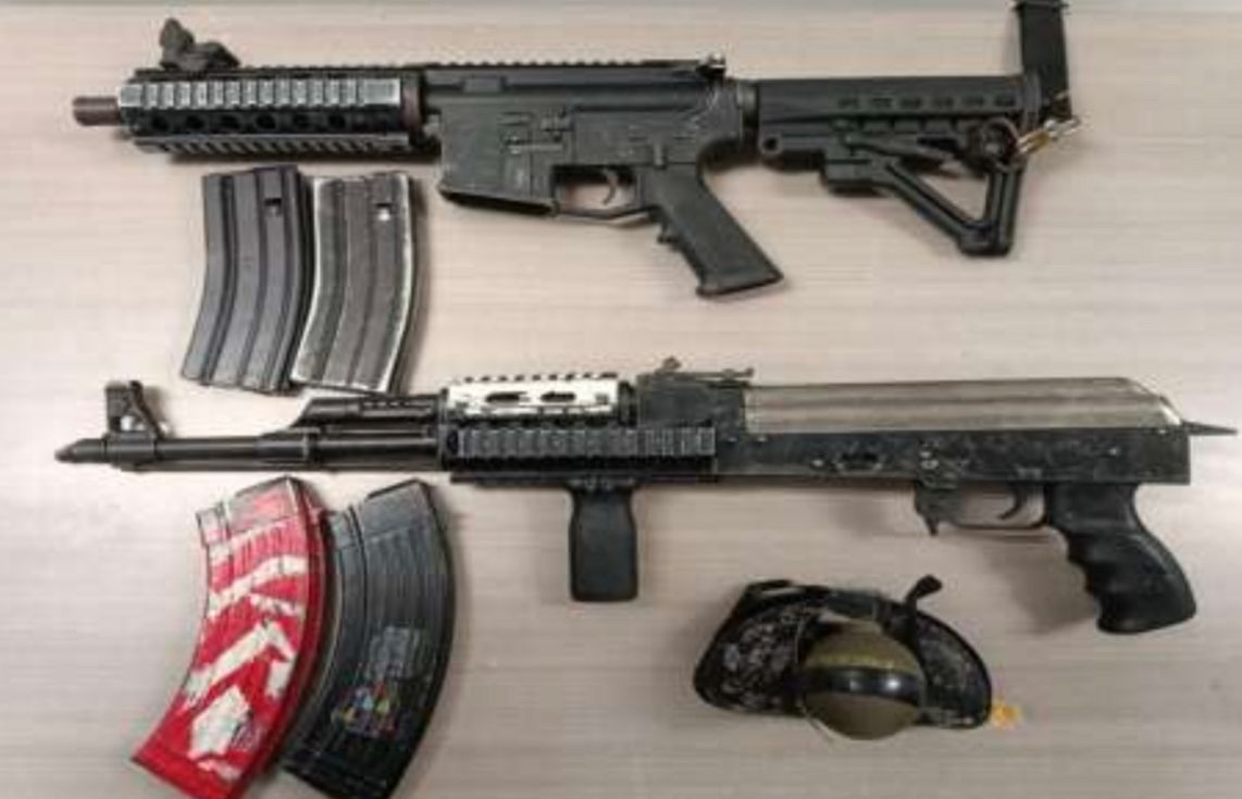Al realizar una inspección a los sujetos y la unidad, les aseguraron dos armas largas, diez cargadores, una granada de fragmentación, dos chalecos balísticos, así como 20 dosis de la droga cristal.