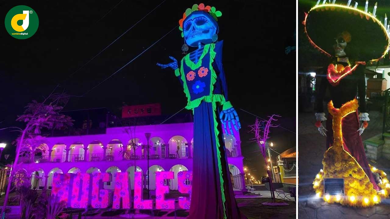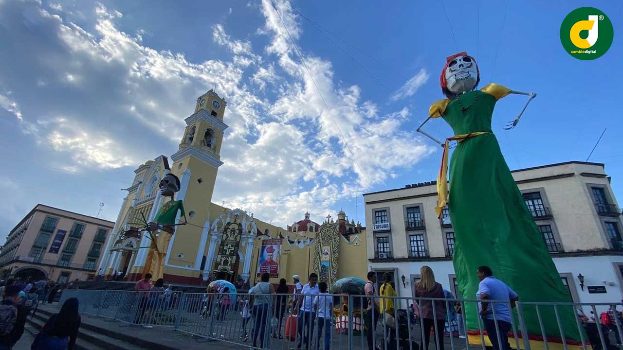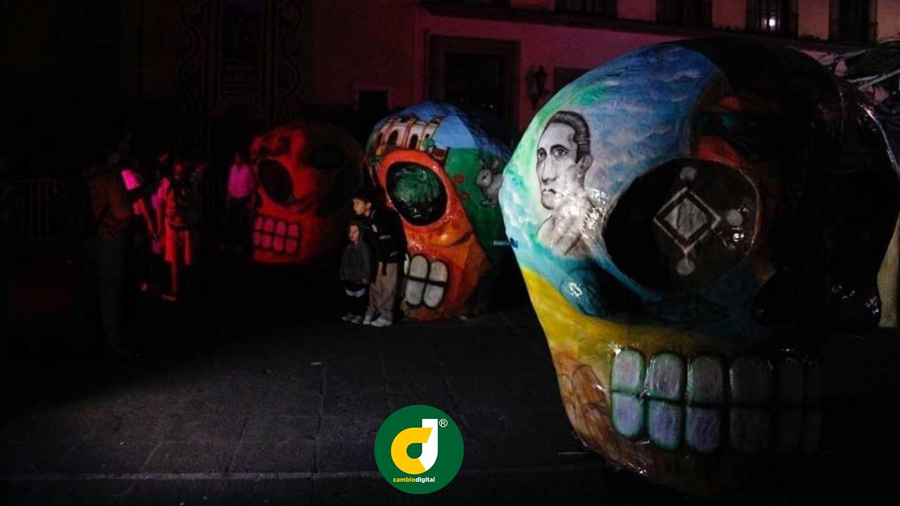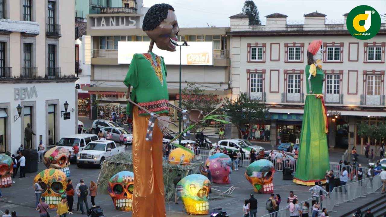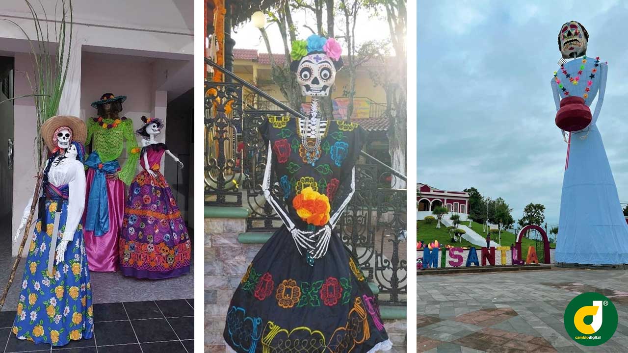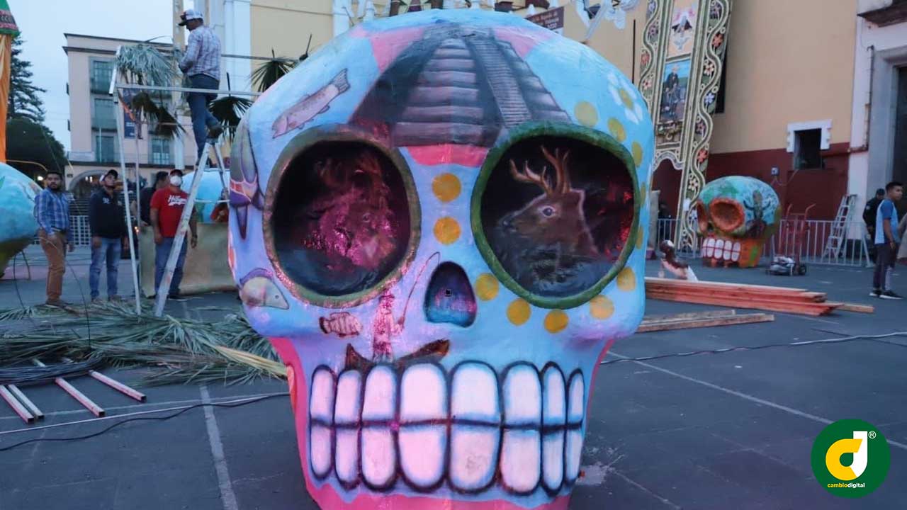 En la mayoría de los municipios en sus zócalos y plazas centrales fueron levantadas catrinas monumentales de 15 a 20 metros y en algunos cráneos gigantes bellamente decorados.