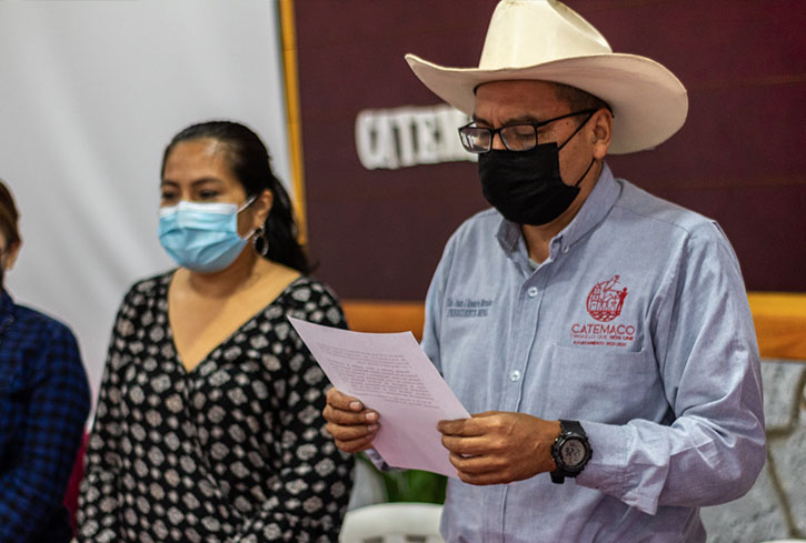 Catemaco, Ver.- De acuerdo a los dictámenes establecidos en la Gaceta Legislativa 19 con fecha del viernes 18 de febrero de 2022 aprobada por el Congreso del Estado, el día de hoy miércoles 2 de marzo del presente año en la sala de Cabildo del H. Ayuntamiento de Catemaco tomó protesta como regidor tercero suplente el Prof. Marco Antonio Brizuela Alcocer ante el presidente municipal Lic. Juan José Rosario Morales, quien presidió este acto protocolario acompañado por los ediles del H. Ayuntamiento Constitucional.