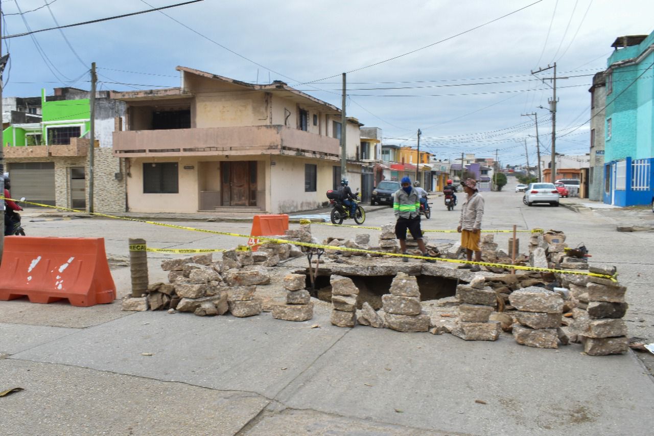 En Coatzacoalcos, atienden socavón en colonia Playa Sol