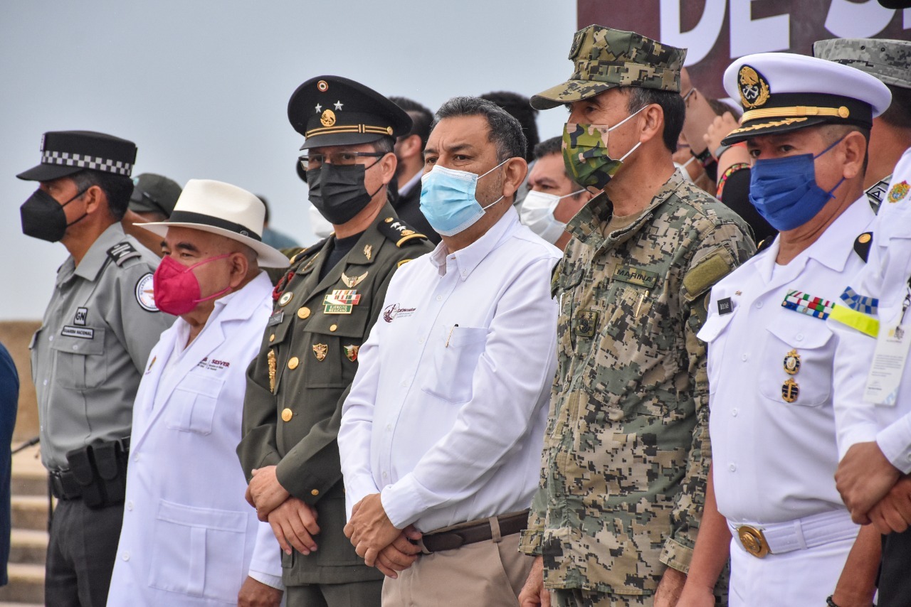 Con la presencia del comandante de la Tercera Zona Naval, vicealmirante Marcos Gutiérrez Hernández; y el comandante de la 29 Zona Militar, general Fernando Colchado Gómez, el munícipe hizo un llamamiento a todos los ciudadanos.