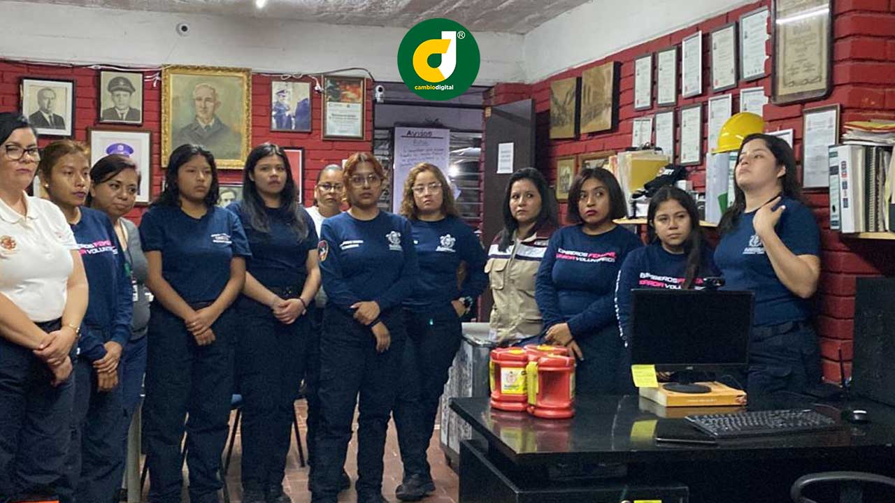 El Cuerpo de Bomberos es integrado por 70 elementos, y esta es la corporación que más mujeres tiene en la entidad y la única con guardia femenil. Las bomberas se capacitaron y egresaron de la escuelita que hay ahí en la misma corporación.