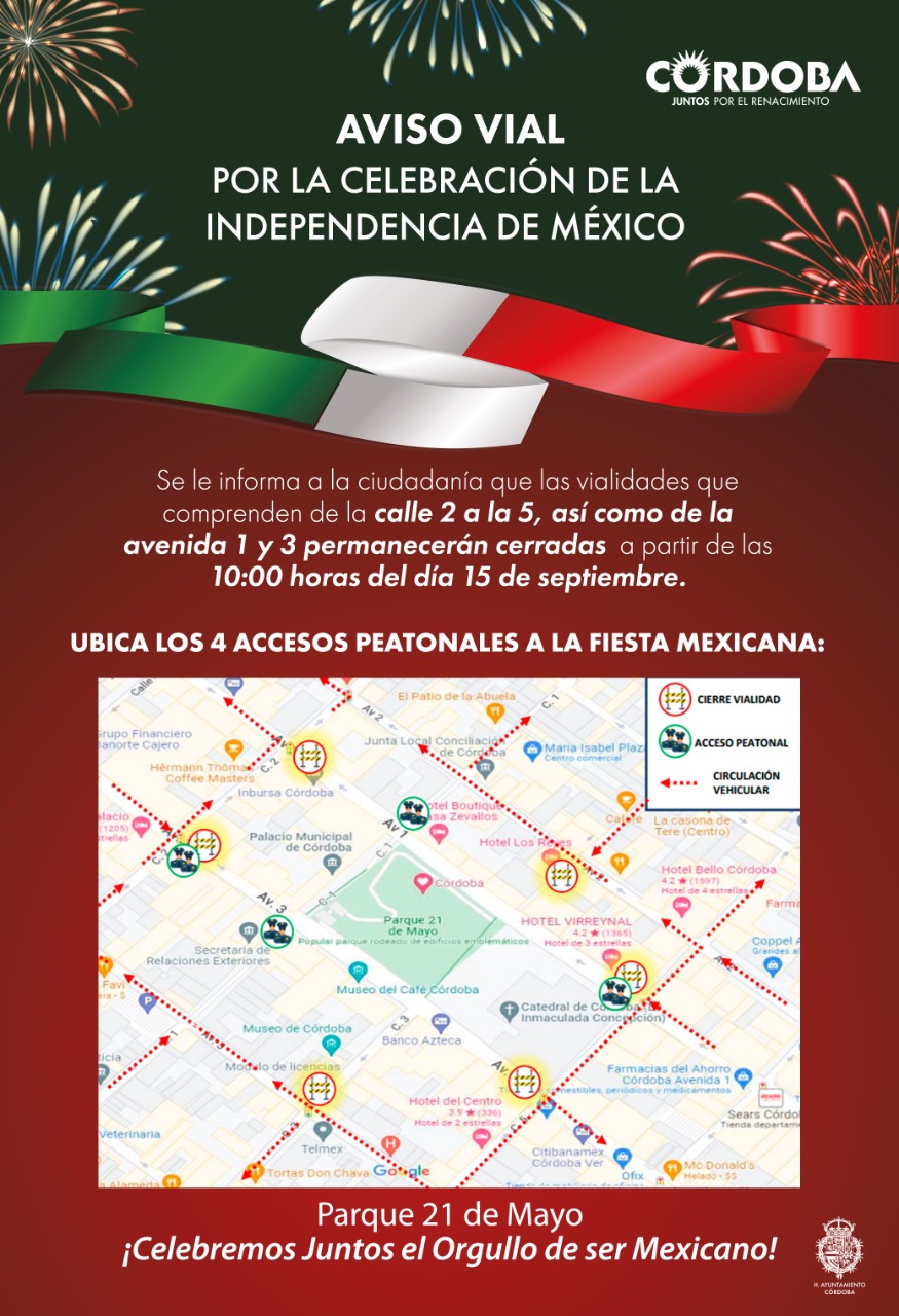 En Córdoba, garantizan seguridad en festejos patrios; habrá cierre vial en Centro Histórico