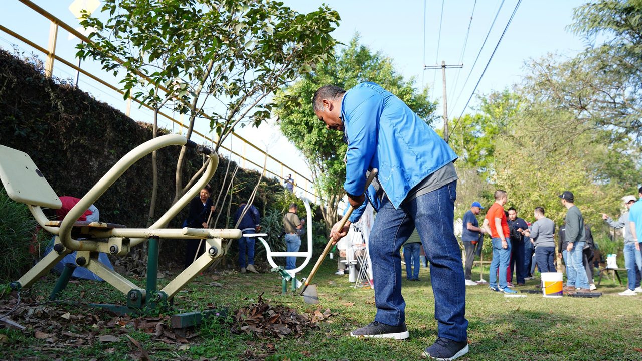 Por su parte, personal de Obras Públicas realizó el repintado de guarniciones y muros, mientras que brigadas organizadas atendieron la limpieza lateral del cuerpo de agua, la zona de la cancha y el andador del lado izquierdo, mediante la recolección de residuos, hojas y hojarasca.