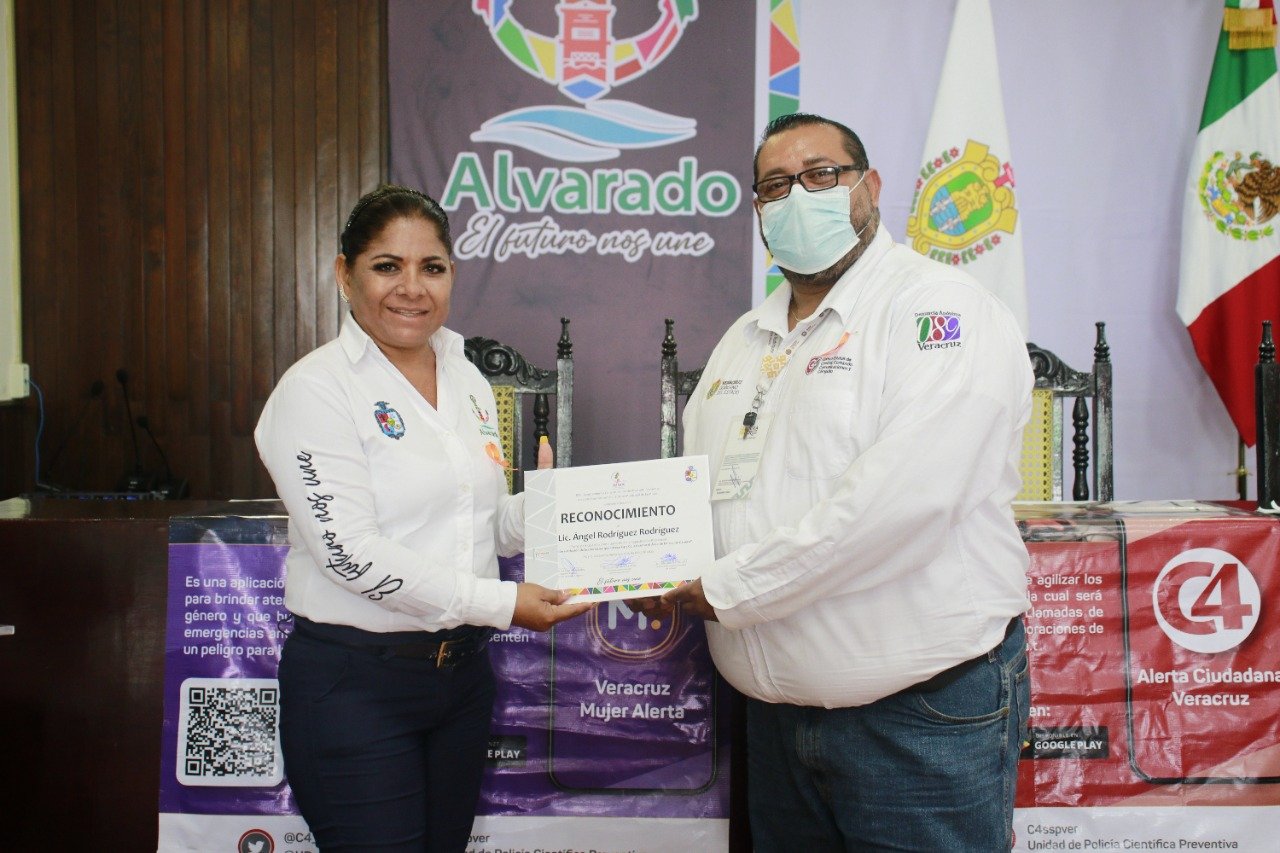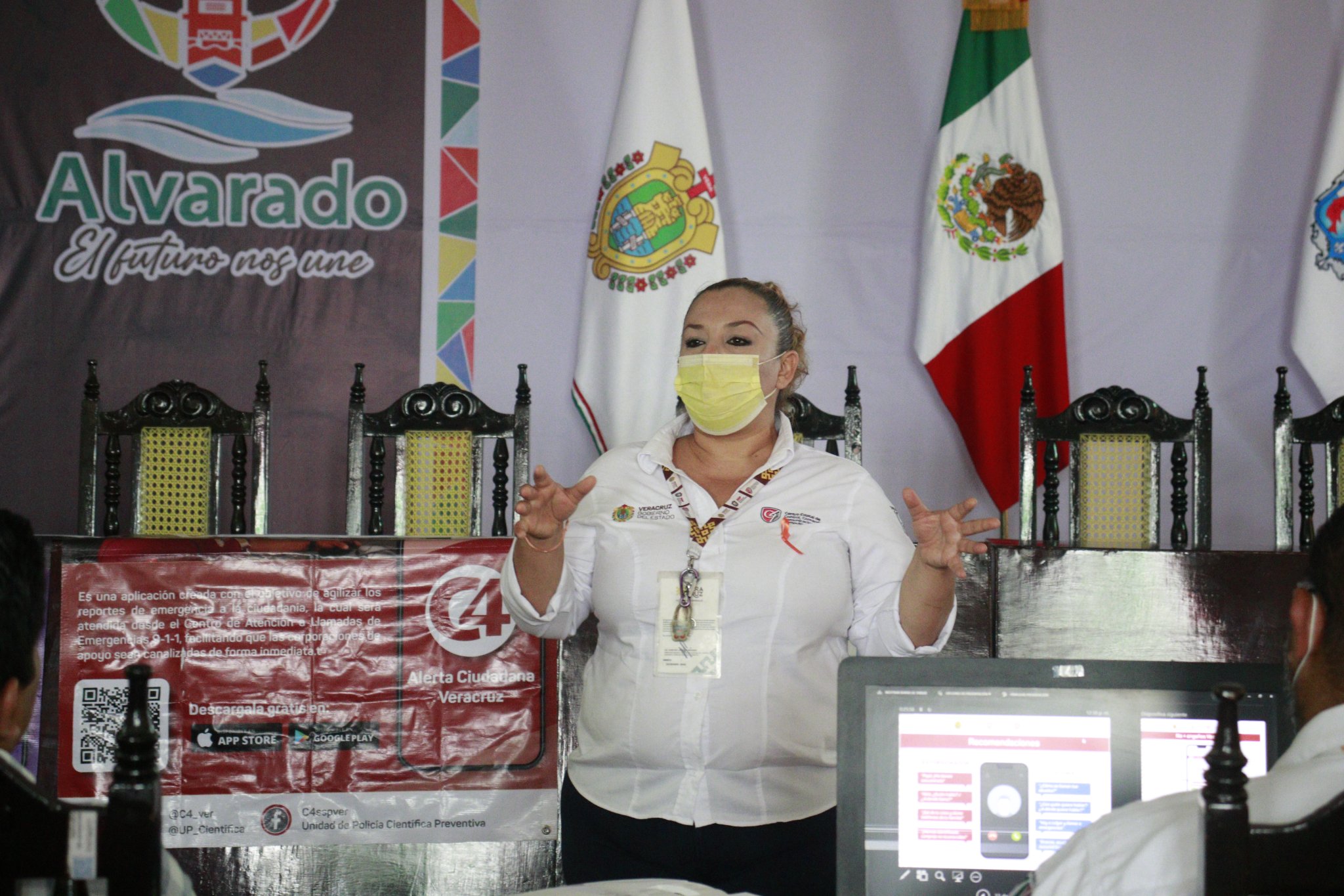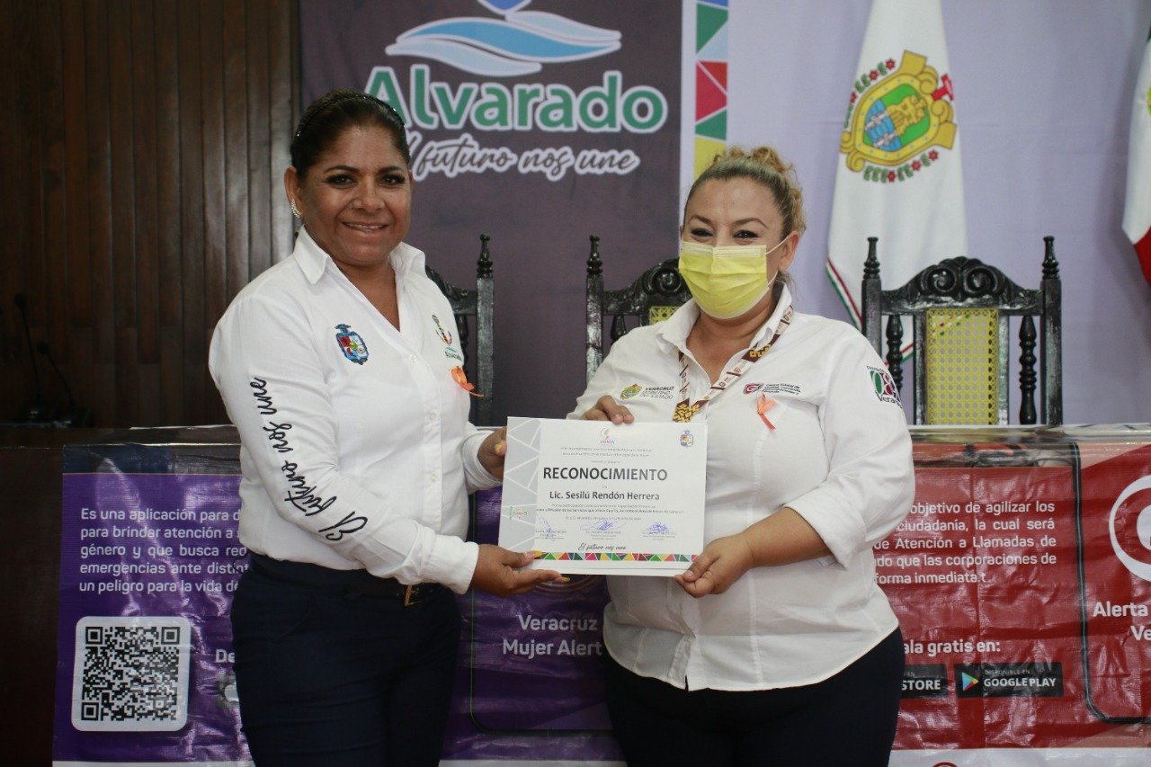 Alvarado, Ver.- En el marco de la campaña Día Naranja que cada 25 del mes recuerda la lucha para generar conciencia y prevenir la violencia contra las mujeres y niñas, el ayuntamiento de Alvarado que encabeza Lizzette Álvarez Vera en coordinación con el Instituto Municipal de la Mujer llevaron a cabo la capacitación “Servicios que ofrece C4 y C5, así como el área de Enlace de Género”.