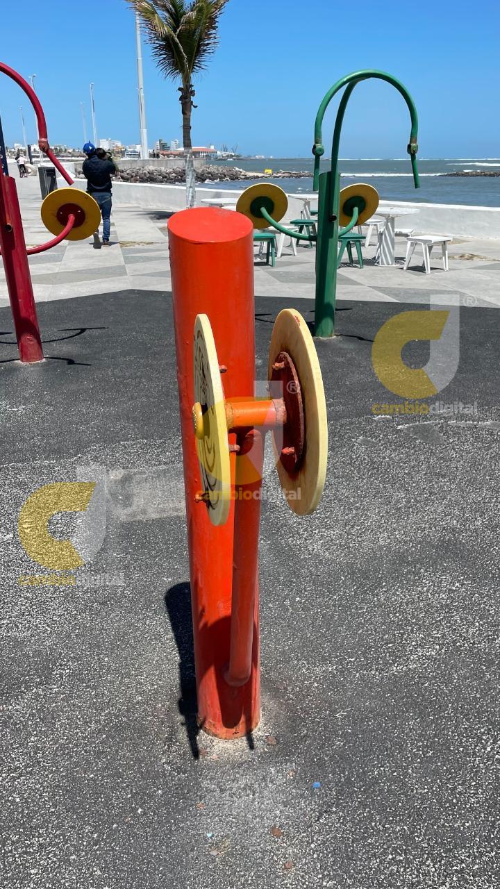 Veracruz, Ver.- Los ejercitadores de piernas, brazos y músculos instalados en el bulevar del municipio de Veracruz a la altura de la Plaza de la Soberanía, se encuentran prácticamente inservibles, es posible que sea por el salitre y falta de mantenimiento o a lo mejor la mala calidad o falta de mantenimiento de la empresa a la que se lo compraron que fue playclub.com.mx que tiene filiales en Monterrey, Nuevo León, Silao, Guanajuato, y la Ciudad de México.