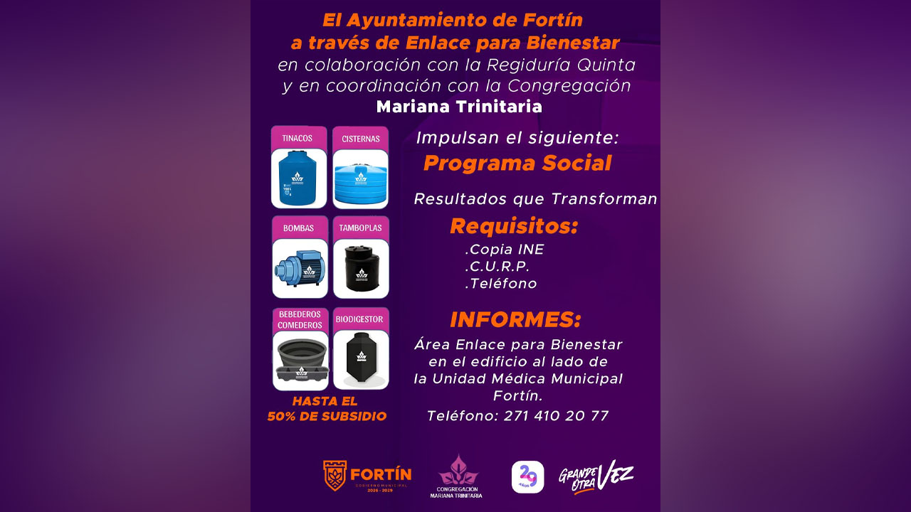 Fortín, Ver.- Con el objetivo de atender las necesidades básicas de las familias fortinenses y fortalecer la economía local de acuerdo a las instrucciones del alcalde Alfonso Efraín “Piccolo” Marín Delfín, la Jefatura de Enlace para Bienestar lanzó la convocatoria para la adquisición de insumos domésticos subsidiados, en colaboración con la Regiduría Quinta y la Congregación Mariana Trinitaria.