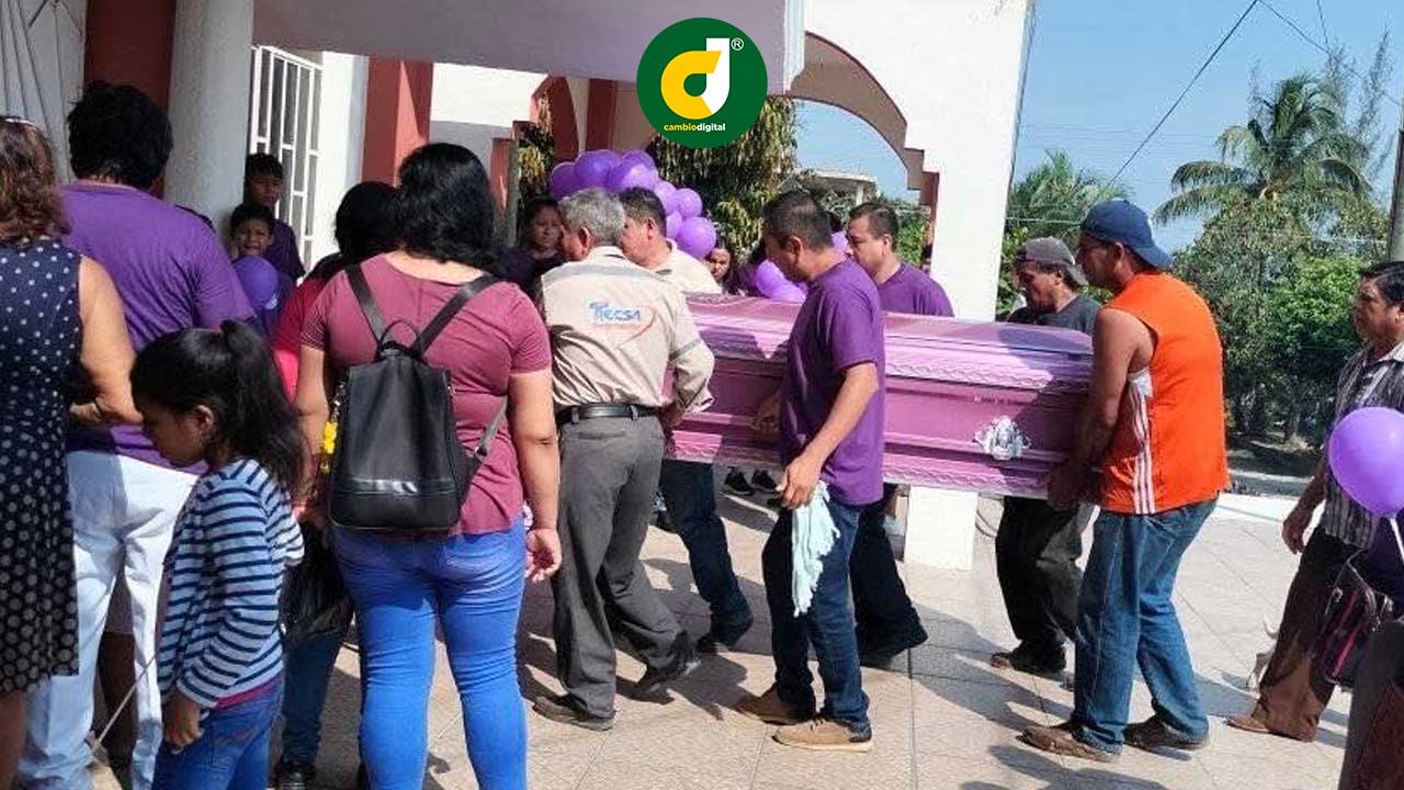 San Rafael, Ver.- Vistiendo ropas morados, globos del mismo color y pancartas en manos, familiares y amigos despidieron a Valeria Ramiro Estebes, de 22 años, víctima de feminicidio.