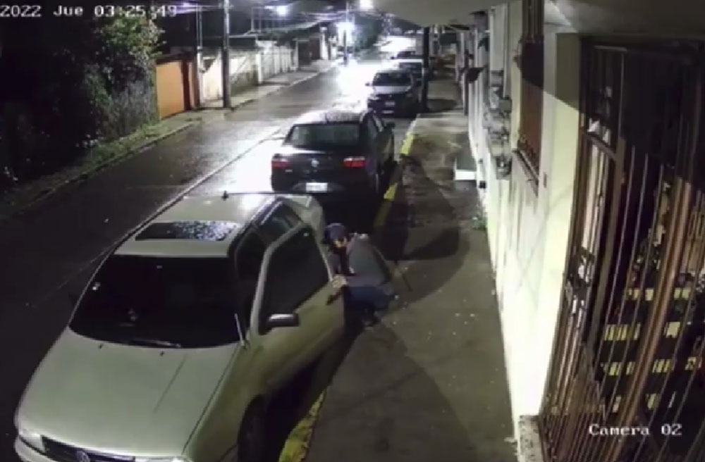Los ladrones llegaron durante la madrugada a las 3:30 horas, se asomaron al interior del automóvil y luego de eso fácilmente lo abren. El segundo de ellos empuja la unidad en cuyo interior ya va su cómplice.