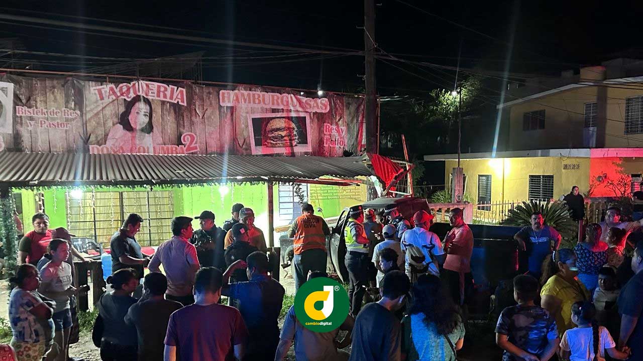 El lamentable accidente ocurrió mientras las víctimas cenaban en la taquería “Doña Columbra 2”. Testigos relataron que el vehículo se desvió repentinamente de la carpeta asfáltica, impactando a los comensales y quedando incrustado contra la mencionada negociación.