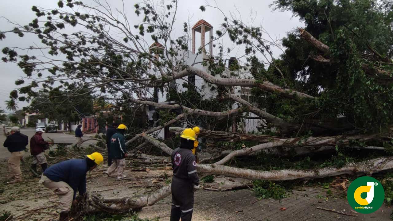Desde temprana hora, elementos de Protección Civil, Bomberos y de Seguridad Pública Municipal acudieron a la comunidad Banderas y a la calle Álvaro Obregón de la colonia Adolfo Ruiz Cortines, donde realizaron labores para retirar árboles que cayeron a causa de los fuertes vientos.