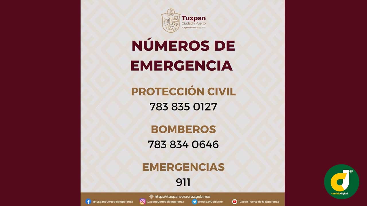 Quedan a disposición de la población los teléfonos de emergencia 911, 783-83 50127 (Protección Civil), 783-83 40646 (Bomberos), para realizar reportes o solicitar auxilios.
