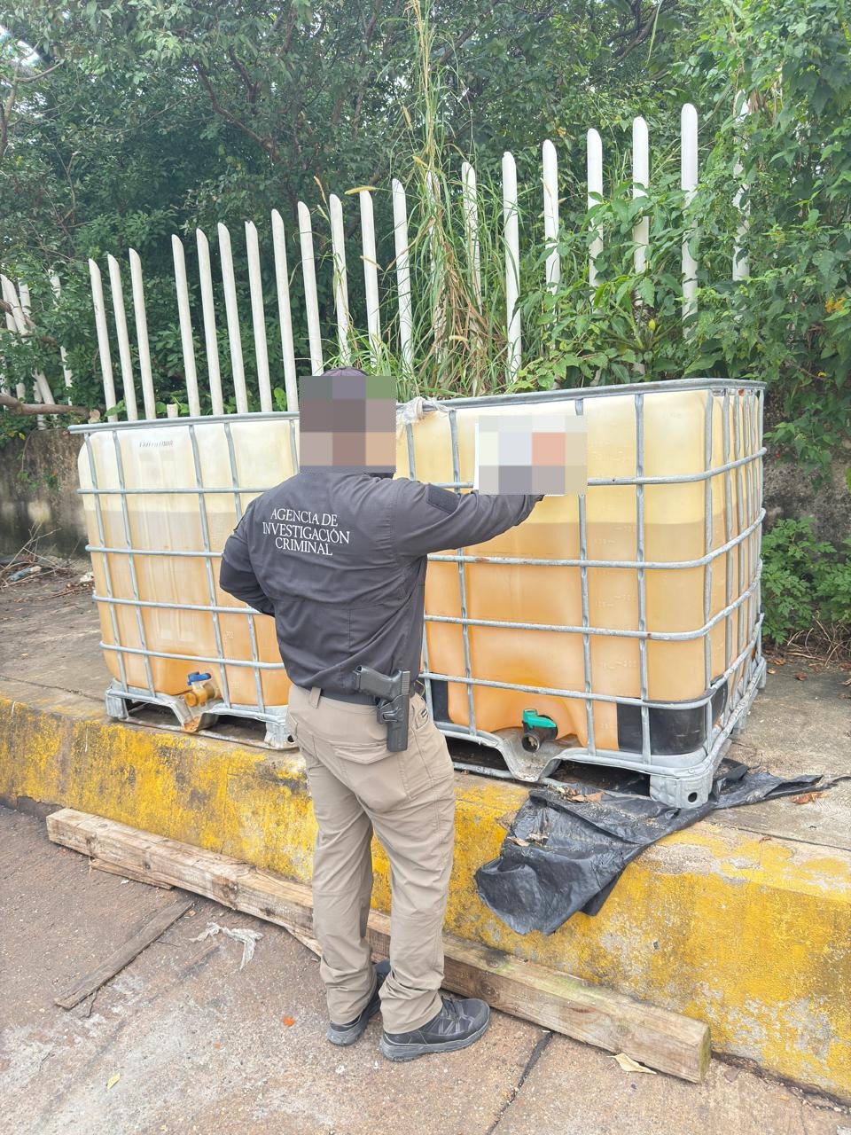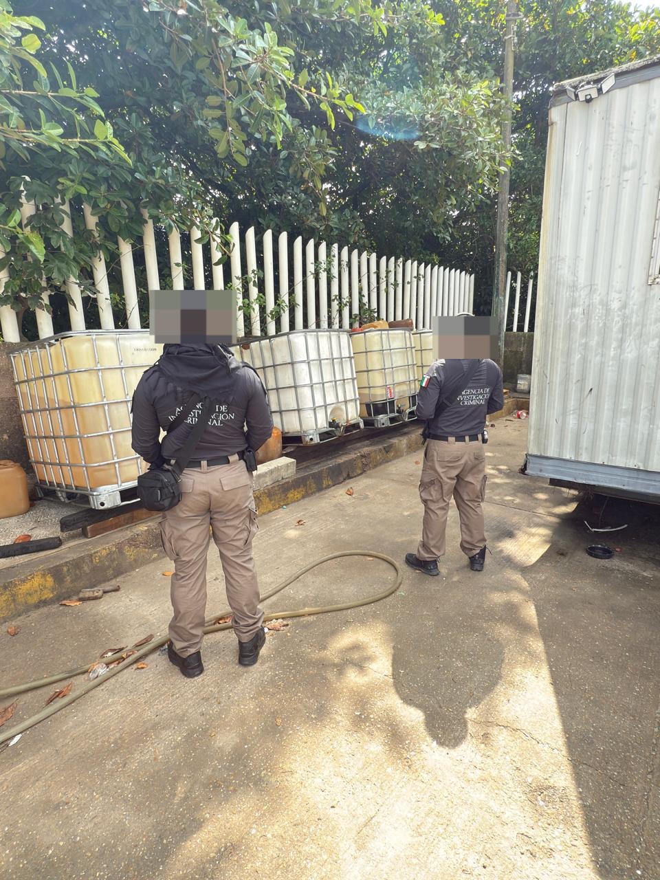 El operativo fue desahogado por elementos de la Policía Federal Ministerial (PFM), en coordinación con peritos del Centro Federal Pericial Forense (CFPF), ambos de la Agencia de Investigación Criminal (AIC), quienes lograron el aseguramiento del hidrocarburo, siete cubitanques, dos contenedores, 27 bidones vacíos, tres cubetas y cuatro mangueras.