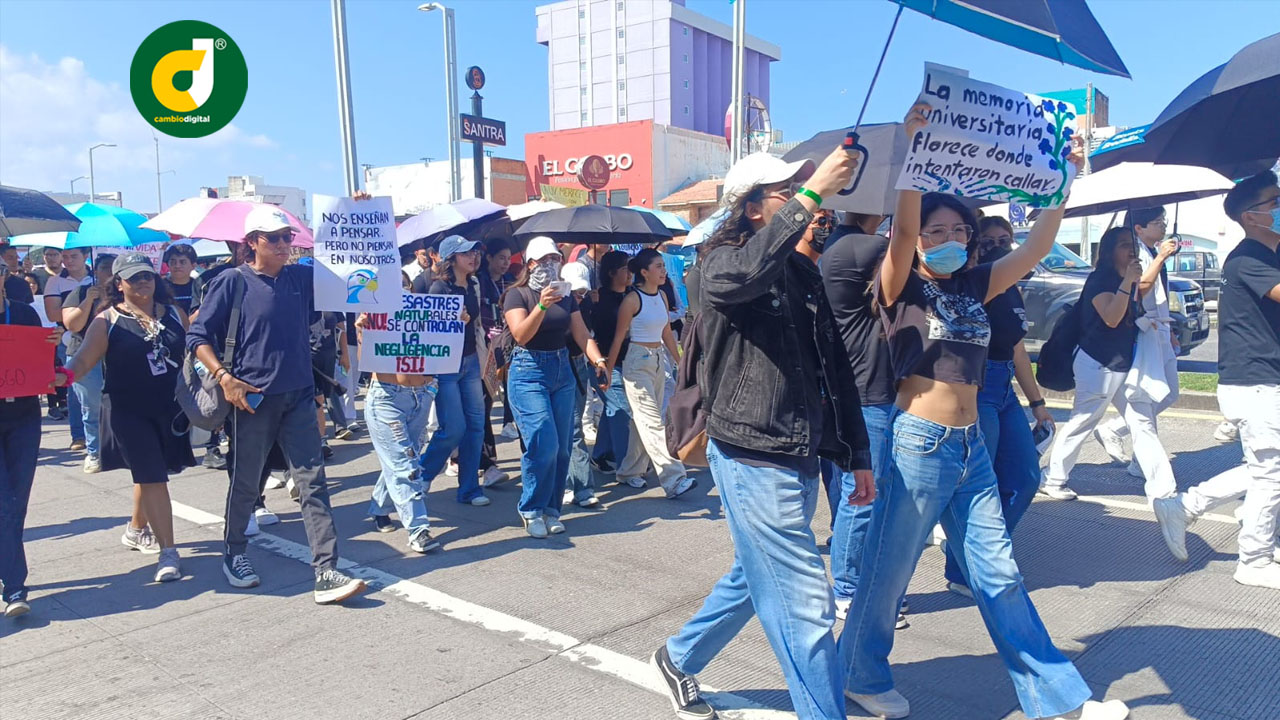 Durante la manifestación, señalaron que la UV no cuenta con protocolos adecuados que garanticen la seguridad de su comunidad estudiantil ante desastres naturales.