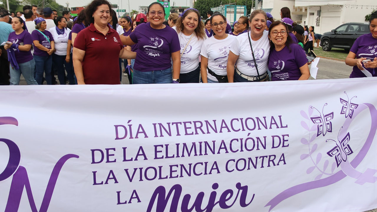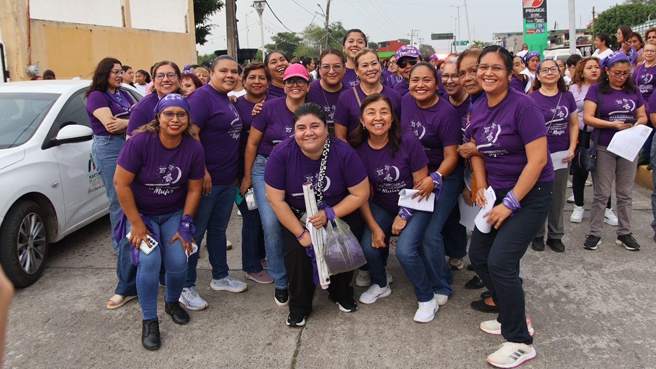 La marcha del 25N dio inicio en el Monumento a la Madre, donde se congregaron grupos de estudiantes, asociaciones civiles, maestras y maestros, así como amas de casa de colonias y comunidades, incluyendo a agentas y sub agentas municipales.