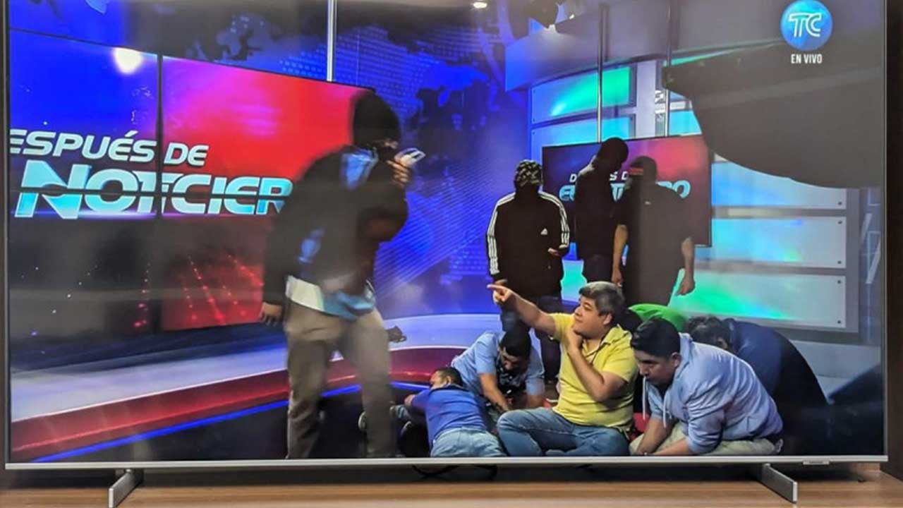 Encapuchados toman las instalaciones de un canal de televisión de Ecuador en plena transmisión pic.twitter.com/AcADETtkIs