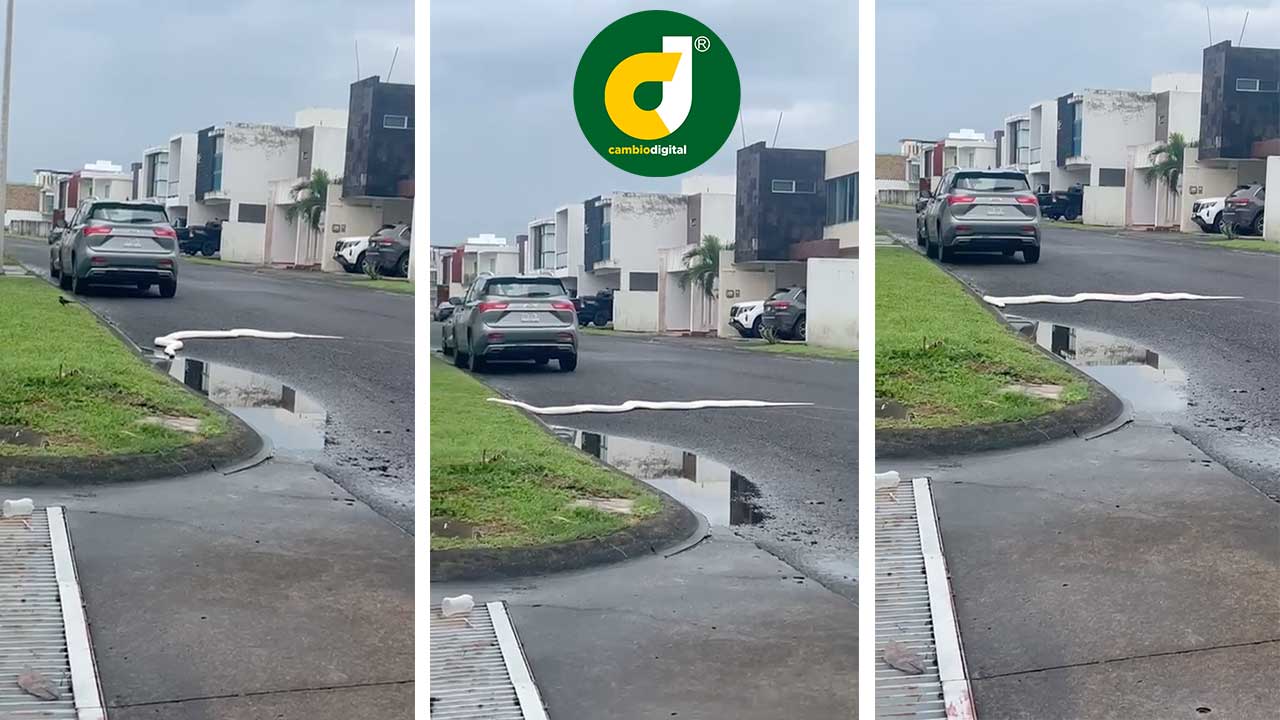 Alvarado, Ver.- Vecinos del fraccionamiento La Rioja en la Riviera Veracruzana, aseguraron una serpiente pitón de más de cuatro metros en calles del lugar.