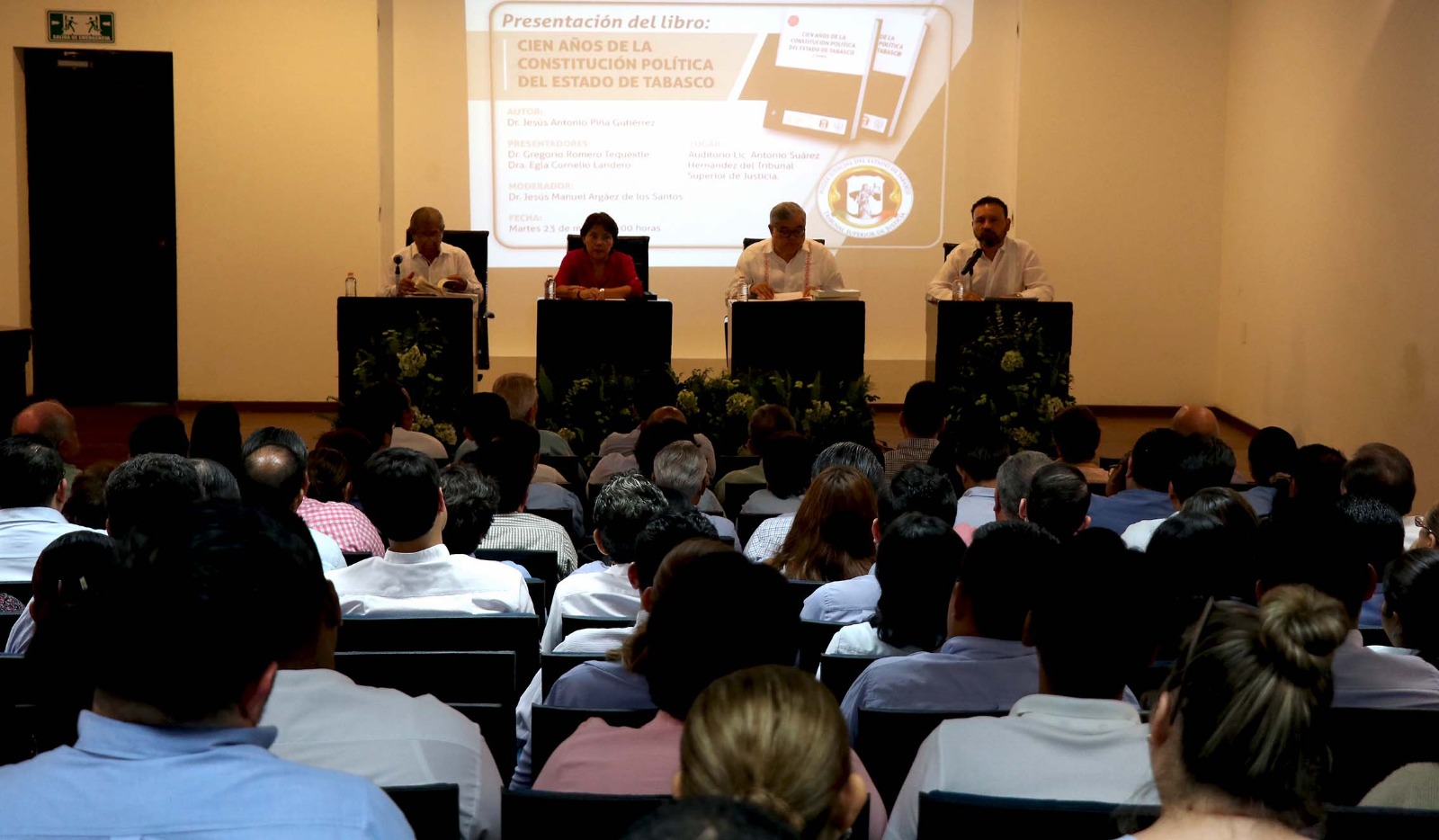 Tabasco.- Como invitado de honor, el presidente del Tribunal Superior de Justicia, Enrique Priego Oropeza, atestiguó la presentación del libro Cien años de la Constitución Política de Tabasco, del doctor Jesús Antonio Piña Gutiérrez, efectuada en el auditorio Antonio Suárez Hernández de la institución, a la que asistieron magistrados, consejeros, jueces, servidores públicos, estudiantes y familiares del autor.