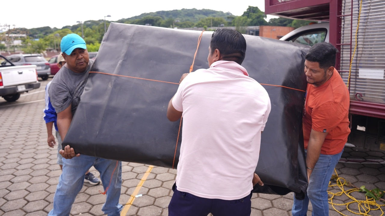 San Andrés Tuxtla, Ver.- Como parte de una gestión efectiva de la alcaldesa sanandrescana, la doctora María Elena Solana Calzada, ante la doctora Yadira Silva Cruz, Directora General de Pesca y Acuacultura del Estado de Veracruz, este jueves se entregaron a los habitantes de comunidades pesqueras de San Andrés Tuxtla, 10 paquetes de estanques de geomembrana, con lo que se cumple al compromiso con este sector productivo en la zona de Los Tuxtlas.