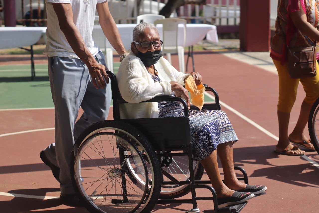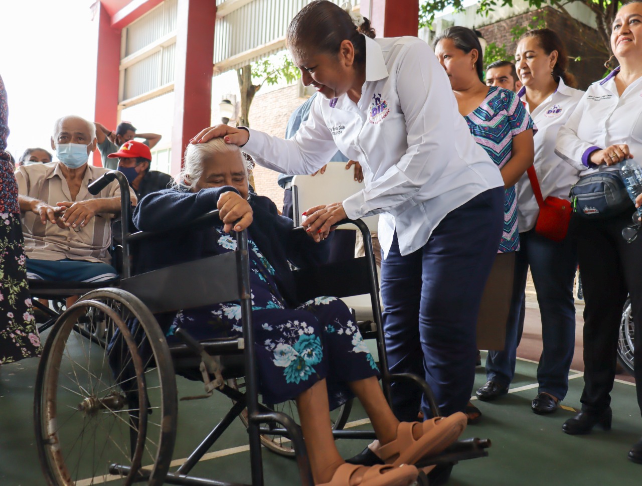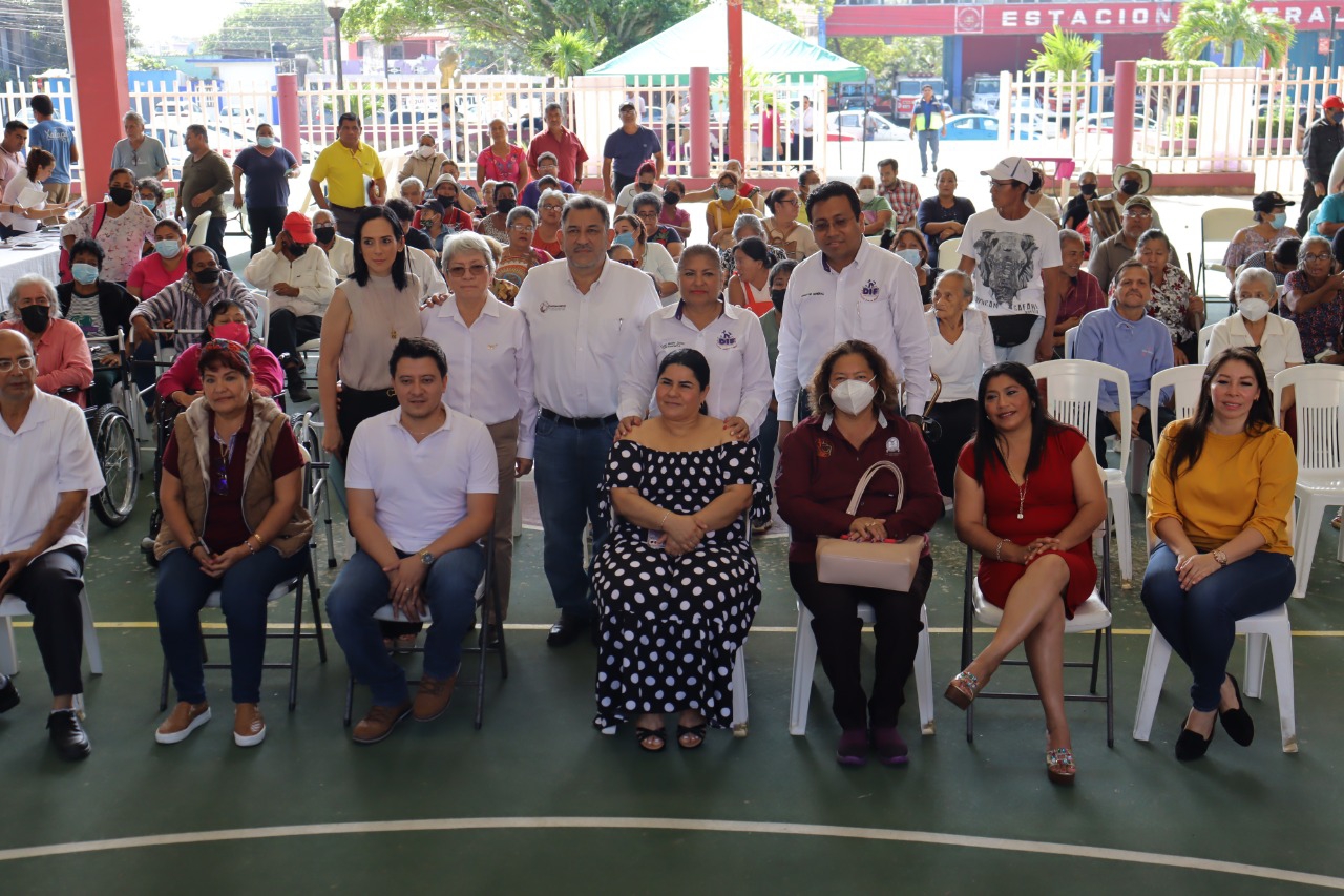 En las instalaciones del Centro de Día del Adulto Mayor (CAM), el alcalde Amado Jesús Cruz Malpica en compañía de la presidenta del organismo asistencial señora Esther Mortera Zetina y la subdirectora del Patrimonio de la Beneficencia Pública licenciada María del Carmen Galindo Ramos, entregaron sillas de ruedas, muletas, andaderas, así como bastones de uno y cuatro puntos.