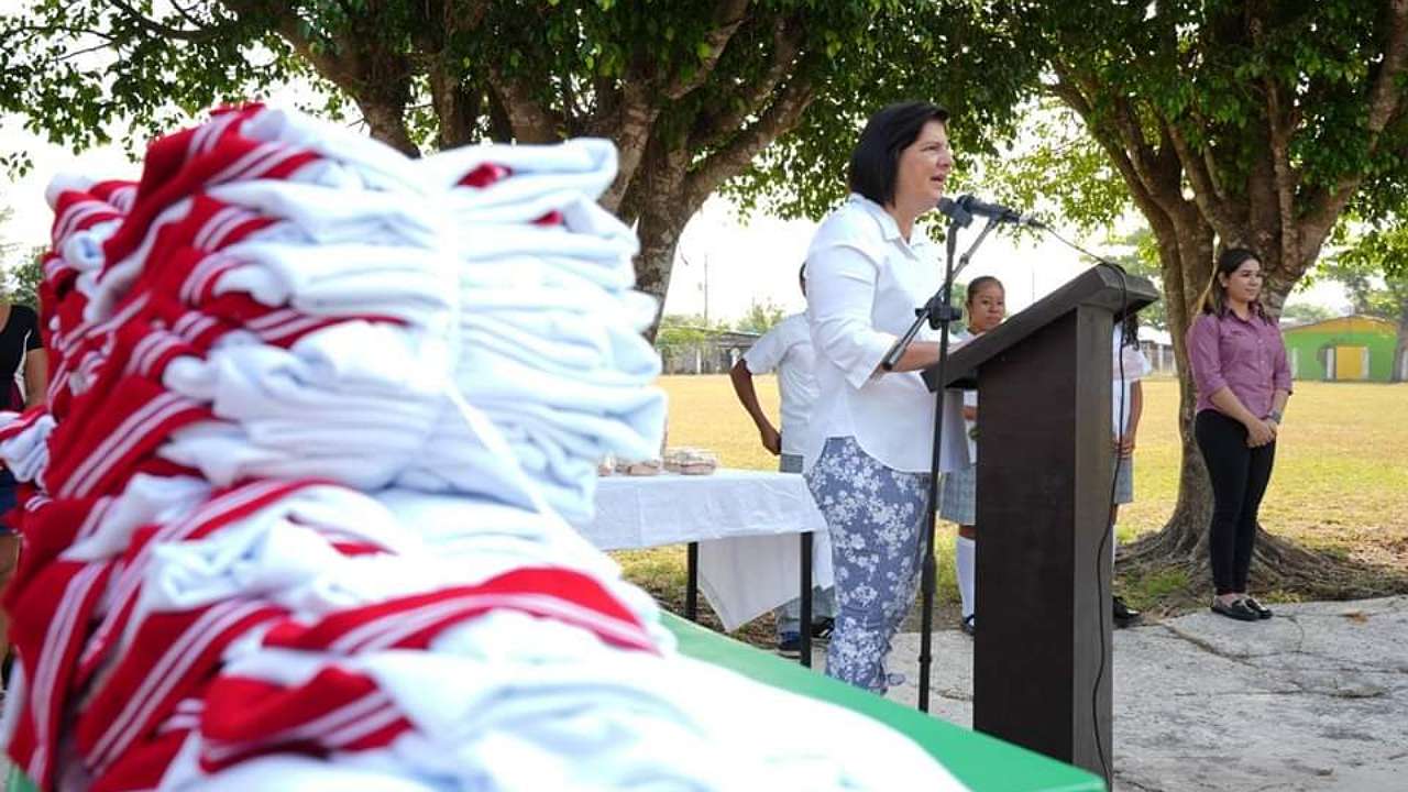 “Muchas gracias a todos, alumnos, docentes, padres de familia, hoy me complace estar en esta comunidad y contribuir con este granito de arena para ustedes que vienen de una desafortunada experiencia, sin embargo, conociendo la historia detrás de estos uniformes, nos dimos a la tarea de solucionar y permitirles que cuenten con la vestimenta adecuada para sus actividades físicas”, detalló la alcaldesa haciendo referencia a que esta solicitud llegó después de que los alumnos fueran defraudados por un proveedor que no les entregó sus uniformes.