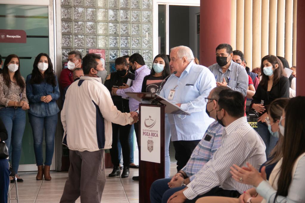 El presidente municipal, Fernando Remes, reconoció el trabajo de reciclaje que realiza la empresa Redia, así como su compromiso con la sociedad veracruzana al donar material de construcción sustentable para las personas que resultaron afectadas por los fuertes vientos que dejó “Grace” en categoría tres y que en su trayectoria el ojo del huracán quedó exactamente sobre Poza Rica.