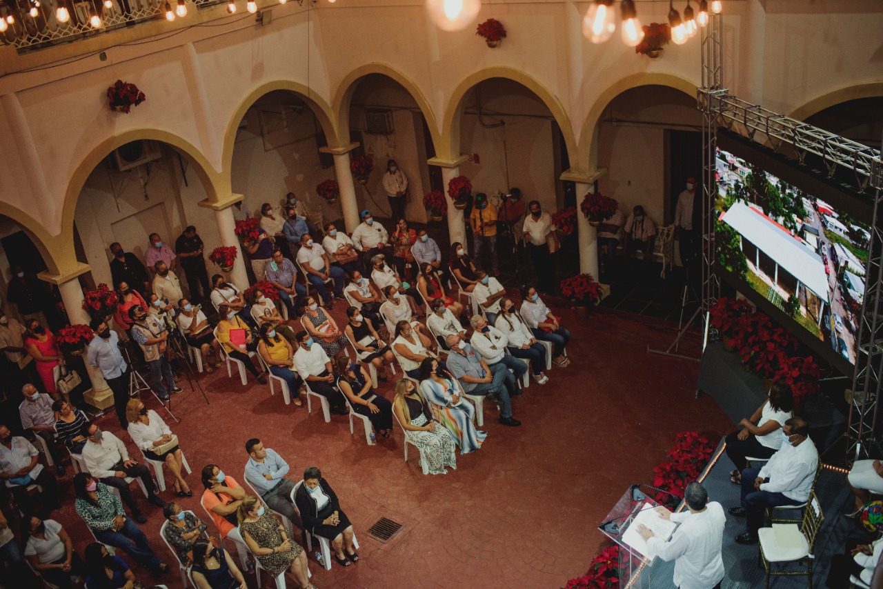 En el Patio de Palacio Municipal el presidente destacó que a lo largo de los cuatro años de trabajo se construyeron 36 techados escolares en planteles educativos de la cabecera y de la zona rural, como apoyo a la educación, además de que regularizaron las escuelas que carecían de papeles, mientras se saneaban las finanzas y se empezaba a atender, en 2020, la pandemia de Covid-19 afecto al municipio cosamaloapeño, lo que derivó en invertir en medicamentos para la letalidad de la misma no se extendiera, con apoyo total del Dr. Arturo Mora Ochoa el cual atendió a cada habitante que llegaba al módulo de primer contacto.